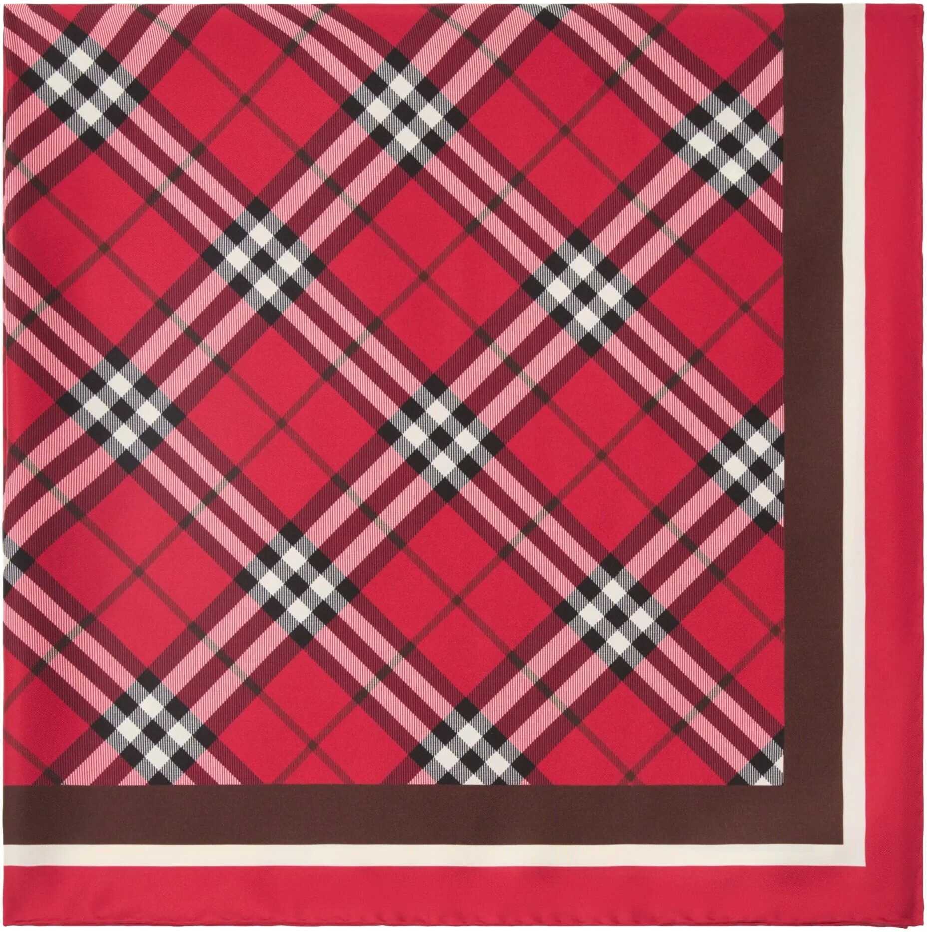 Burberry's Silk check Scarf is a refined accessory that reinterprets an archival pattern with contemporary elegance. Square in shape, it features contrasting stripes on the edges, hand-rolled hems and the iconic Knight Stamp in the center. Burberry lettering printed on the corners completes the design, making it a distinctive and timeless garment.