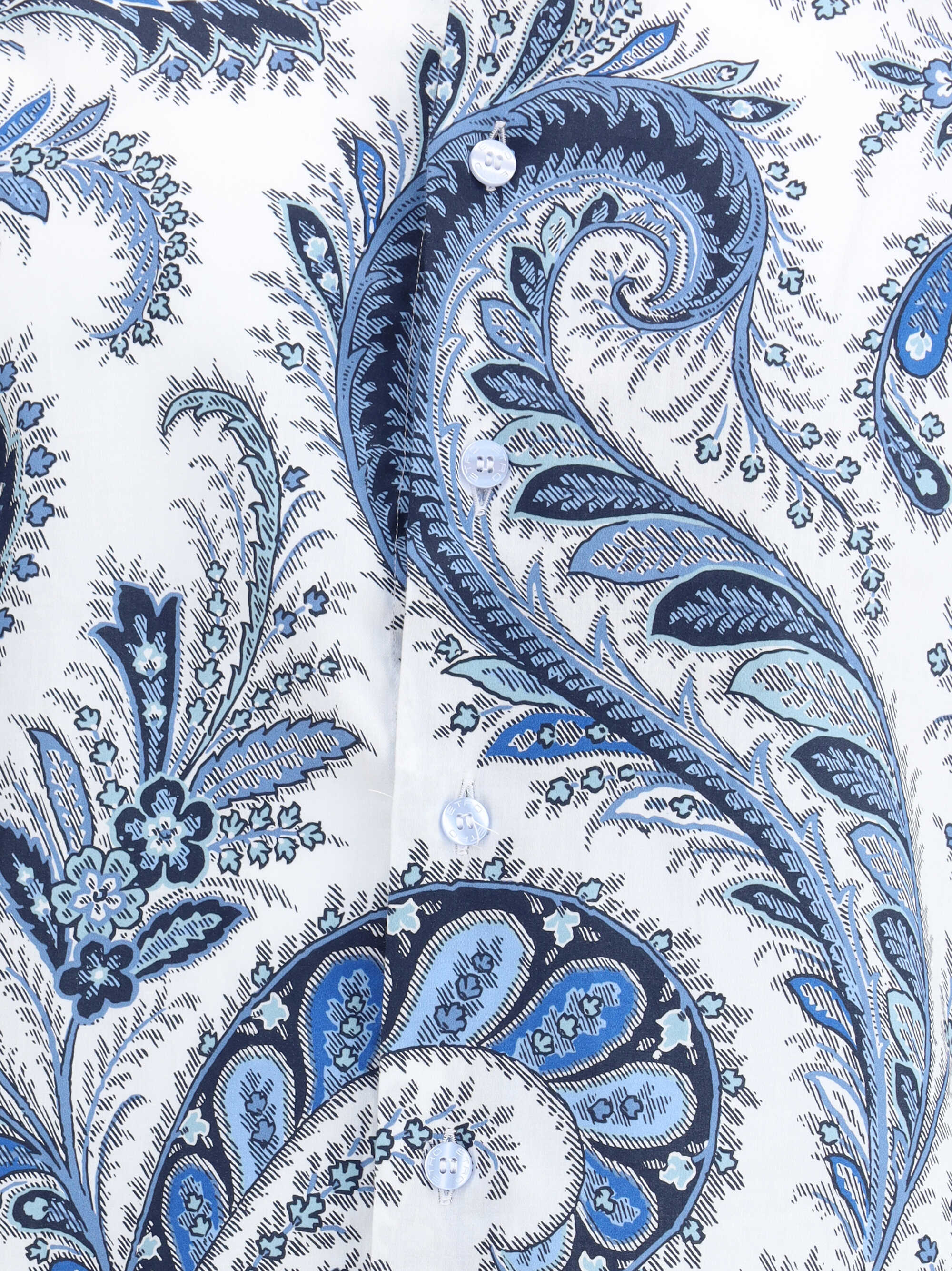 Cotton Roma Shirt by Etro features a classic collar and front button closure for a clean, versatile look. Adjustable button cuffs ensure a customizable fit. The garment features the iconic contrasting paisley pattern, the brand's signature symbol, which adds a touch of elegance and originality to the design. Perfect for those seeking style and comfort for any occasion.