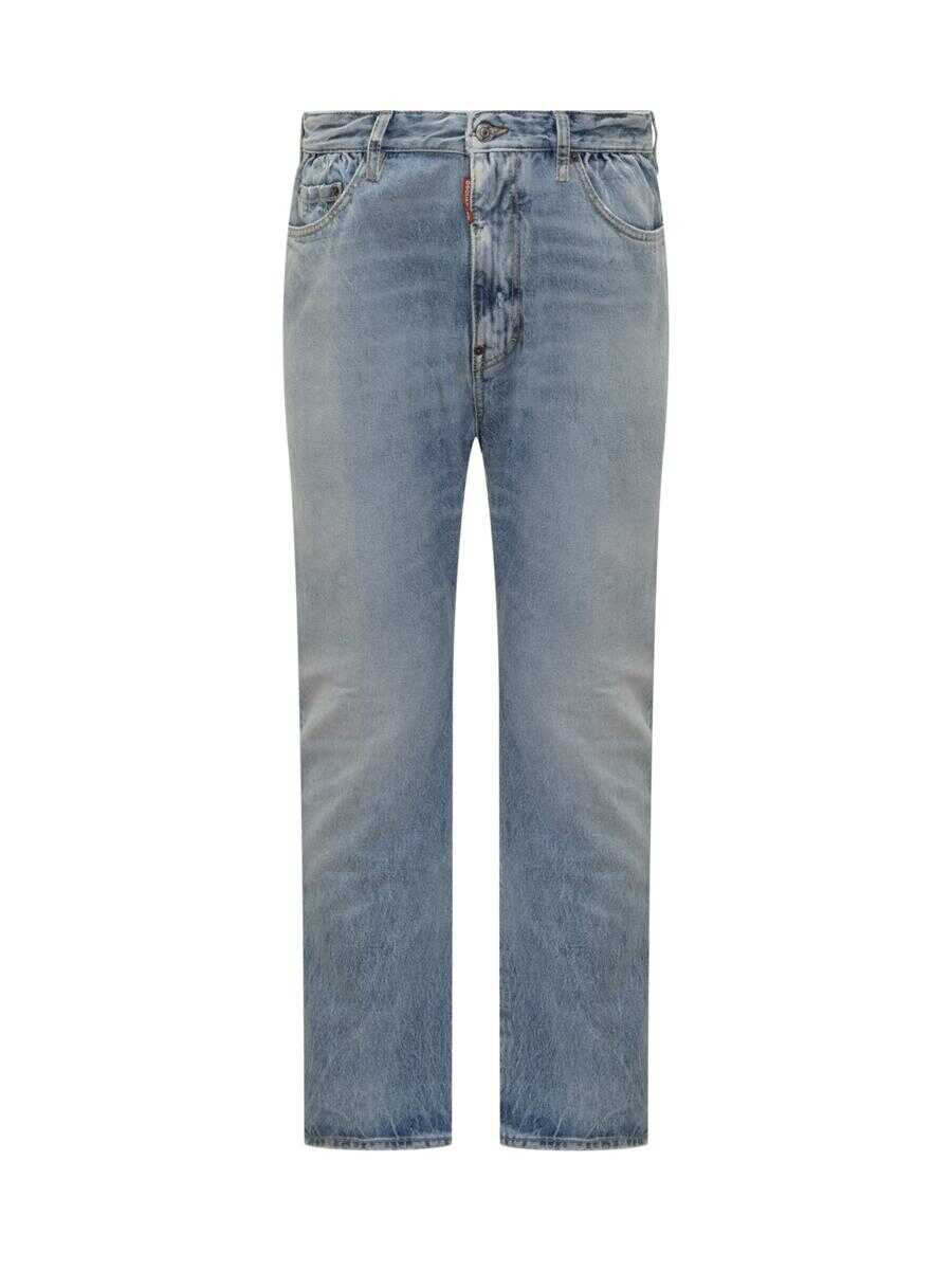 Men's Dsquared2 London jeans in clear vintage-effect denim. Regular fit, button closure, iconic red label on front.