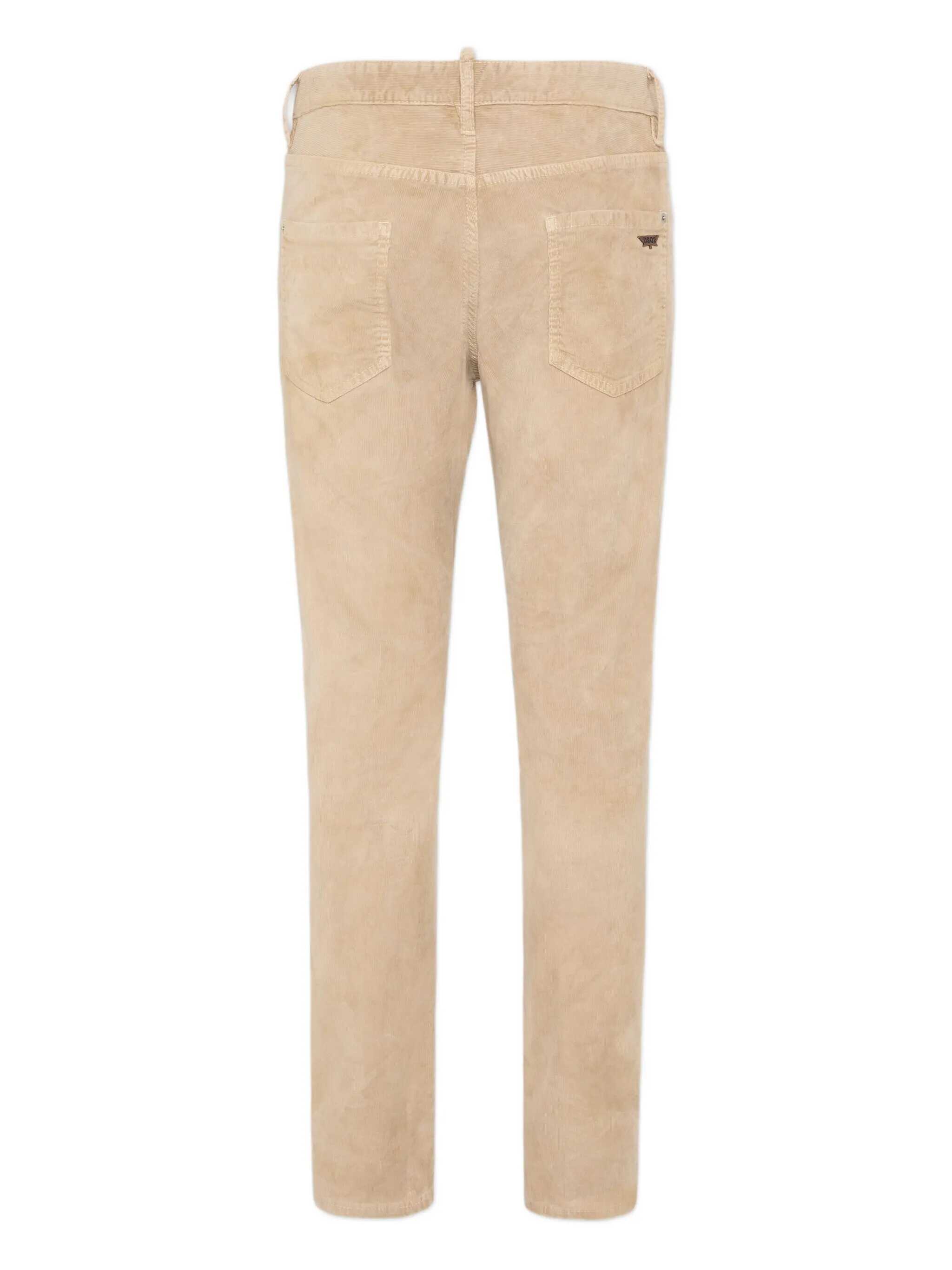 Dsquared2 pants in beige velvet, five-pocket model with slim fit. Button and zipper closure, logo label on front.