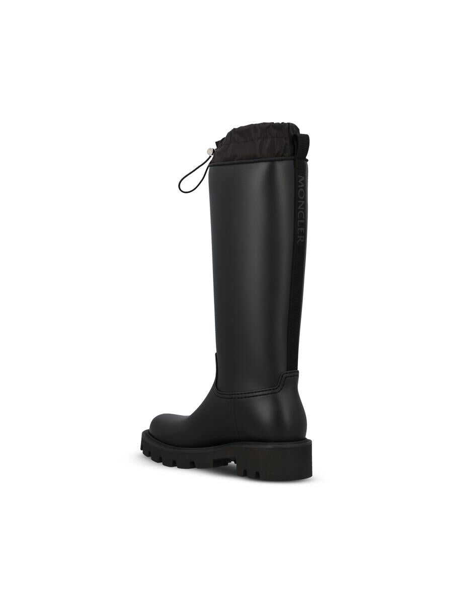 Moncler's Kickstream High rain boots combine outdoor functionality and urban style in a bold, contemporary design. Made of matte-effect rubber with a chunky sole and sculpted profiles, they feature a high silhouette and an embossed logo tab on the front. Perfect for tackling rainy days with character, without sacrificing the brand's signature aesthetic. - Upper: 100% PVC - Color: black - Lining: 80% polyamide, 20% elastane - Sole: 100% rubber - Textile insole - TPU welt - Drawstring closure - Waterproof - Made in Italy - Box included - Item code: W4G00190M4522999