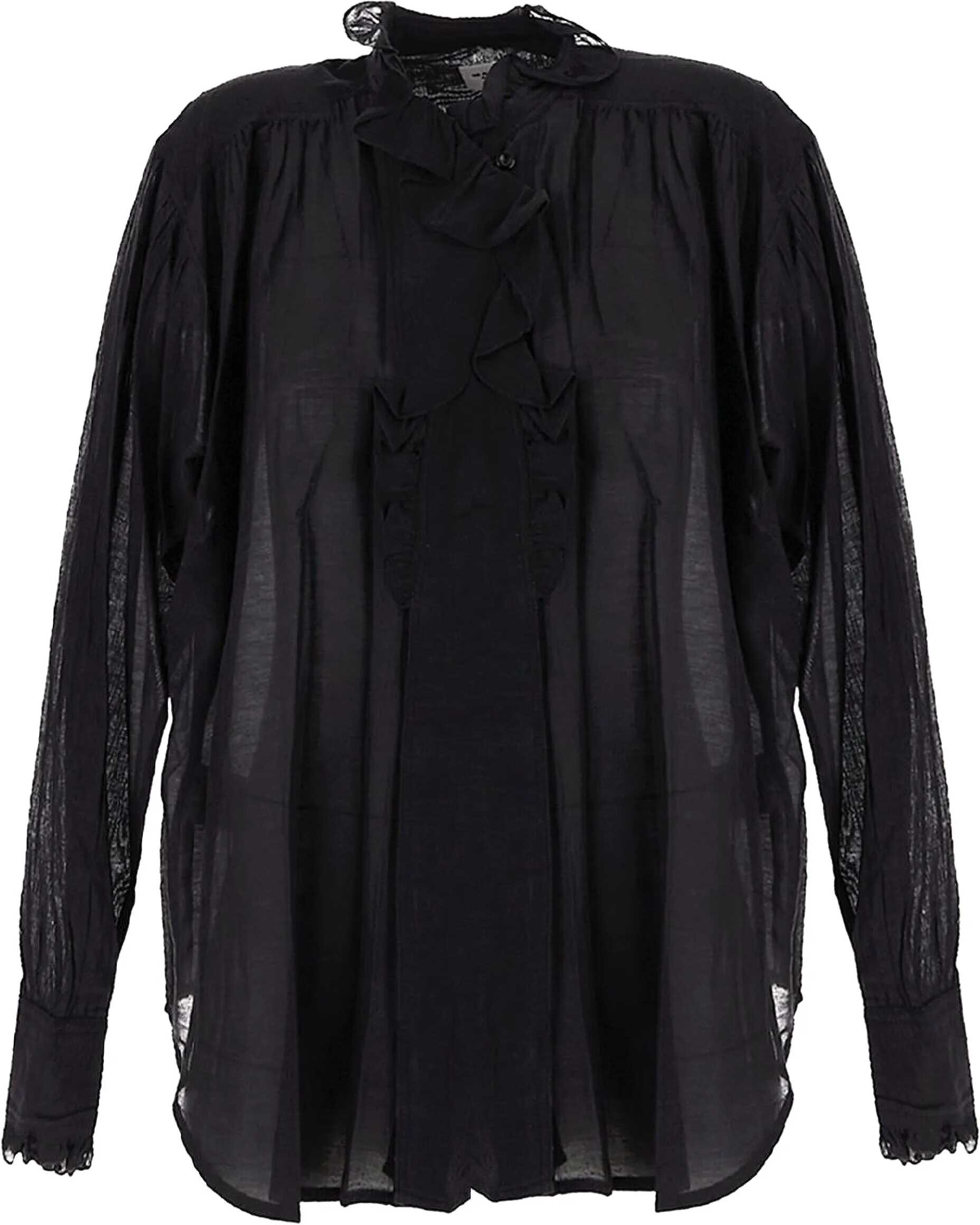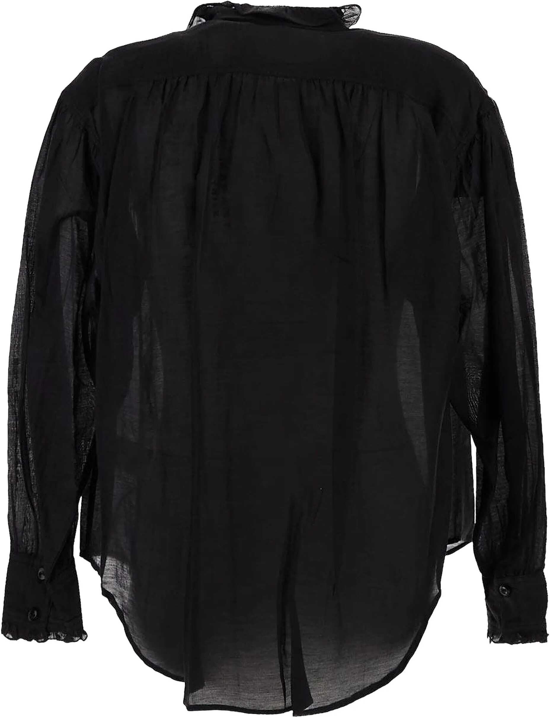 Marant Étoile's Pamias Blouse is a garment of ethereal elegance and sophisticated design. Made of lightweight cotton voile embellished with ruffles, it offers a touch of romance and movement. It is distinguished by its asymmetrical collar and shoulder inserts, which add an element of originality to the design. The long sleeves lend an air of sophistication, while the asymmetrical hidden button placket keeps the line clean and flowing. The ruffle trim further enhances its character, and the straight cut ensures a comfortable and versatile fit, ideal for a chic, casual look.