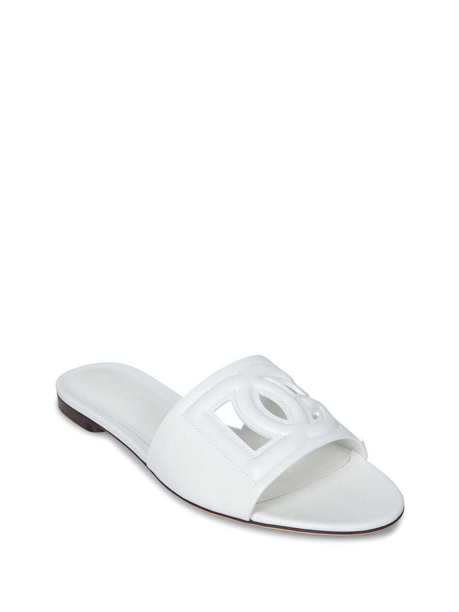 White leather Millennials flats from Dolce & Gabbana featuring embossed logo to the front, cut-out detailing, almond toe, branded insole and flat rubber sole.