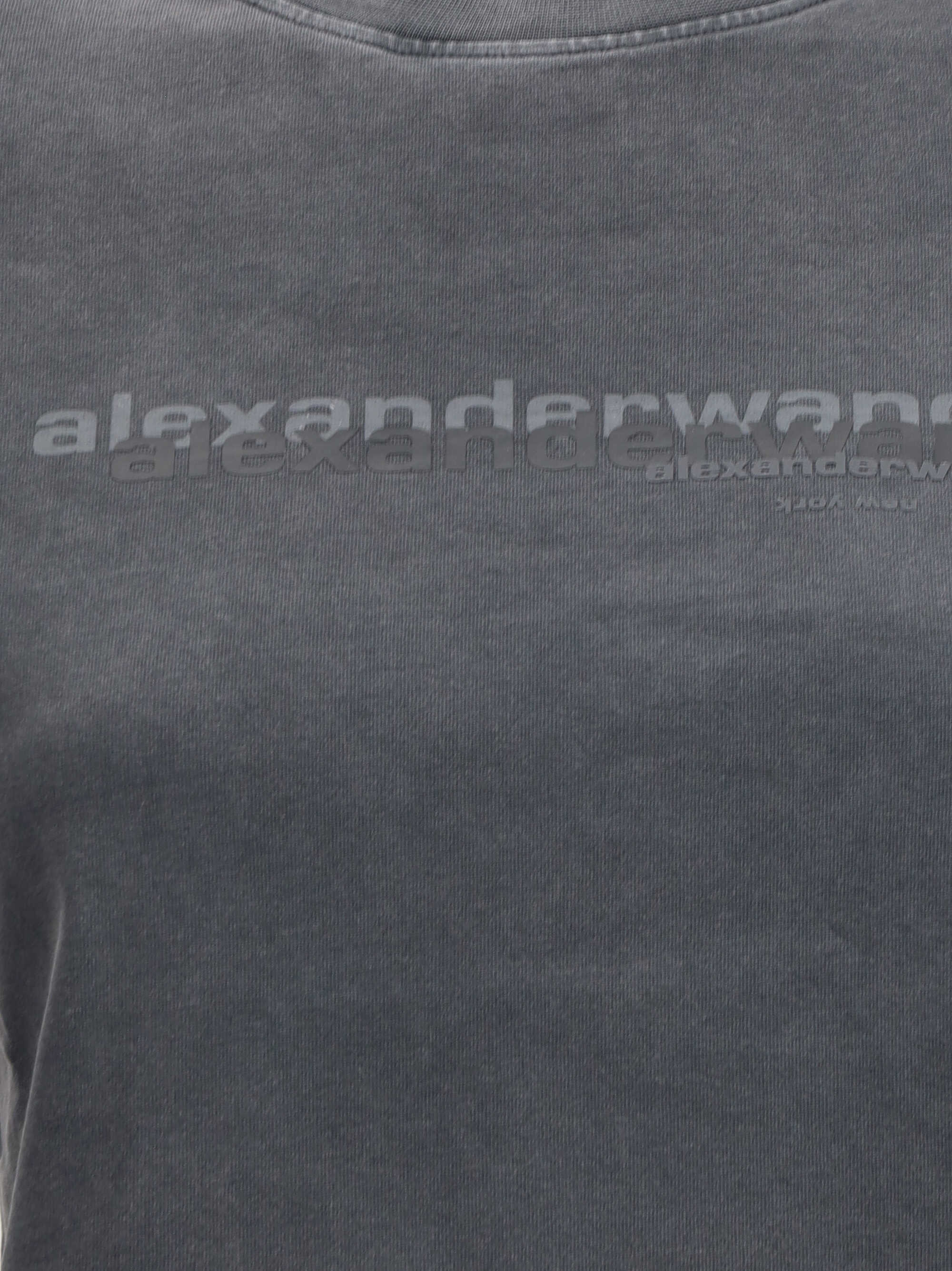 Alexander Wang's cotton T-Shirt is a modern essential. The cropped model features a ribbed crew neck and stands out for the iconic logo printed on the front, which gives a recognizable and urban touch to the minimal style of the brand.