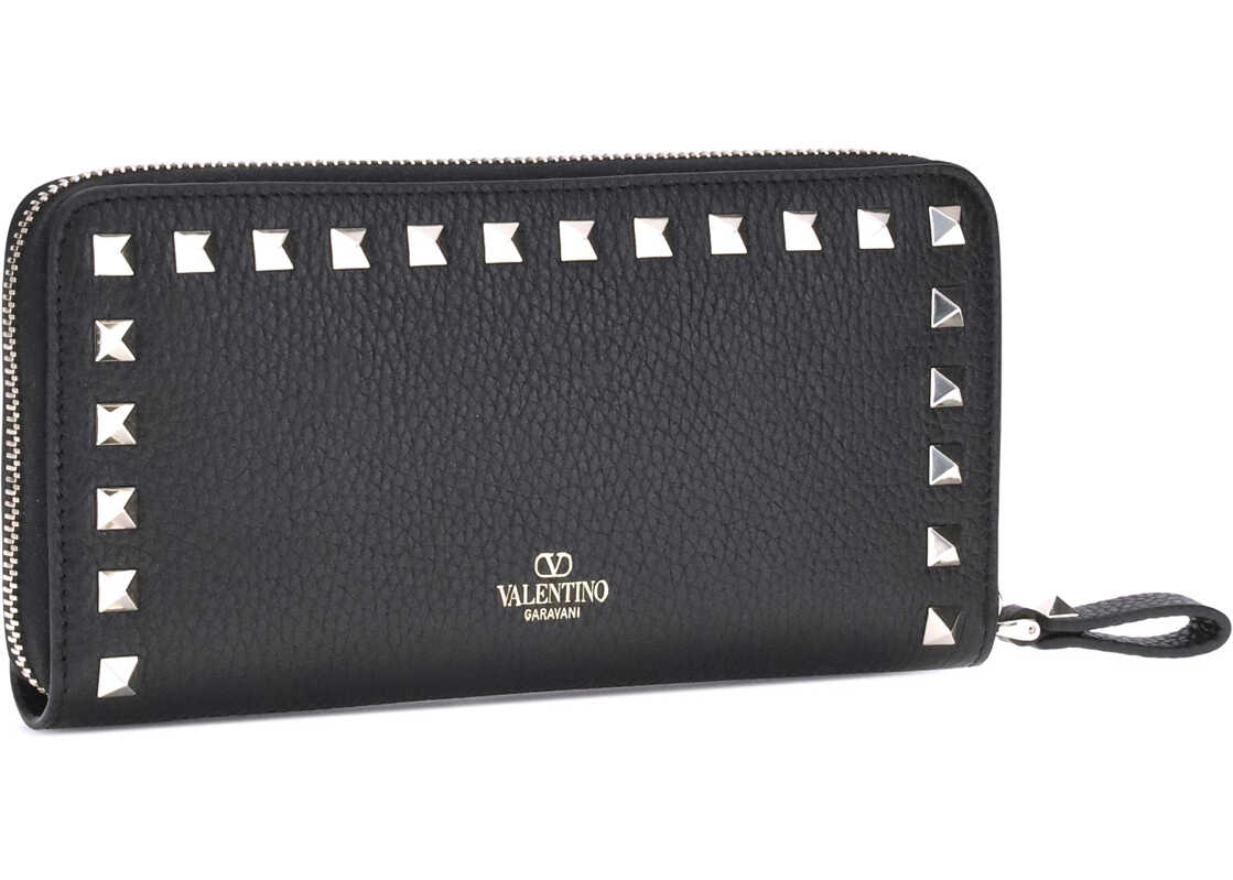 The Valentino Garavani leather Rockstud Wallet is a stylish and functional accessory. It features a lap zipper closure that offers security, while the iconic Rockstud studs applied on the perimeter add a distinctive and bold touch. The brand's iconic contrasting monogram on the front enhances the design. Inside, there are three compartments to better organize personal belongings, along with a zippered coin purse for added convenience. A wallet that combines style and functionality in a sophisticated way.