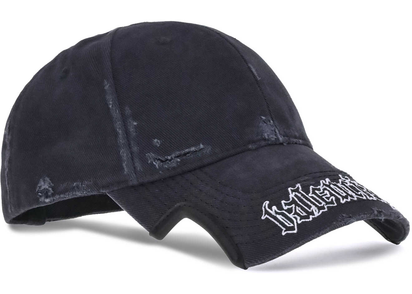 Balenciaga's Blackletter Script Baseball Hat combines bold style with functional details. Featuring embroidered ventilation eyelets on the top, it has a cut-out visor on both sides and an adjustable pull tab with hook-and-loop closure at the back. The Blackletter Script motif embroidered on the front lends a distinctive touch to the contemporary design.