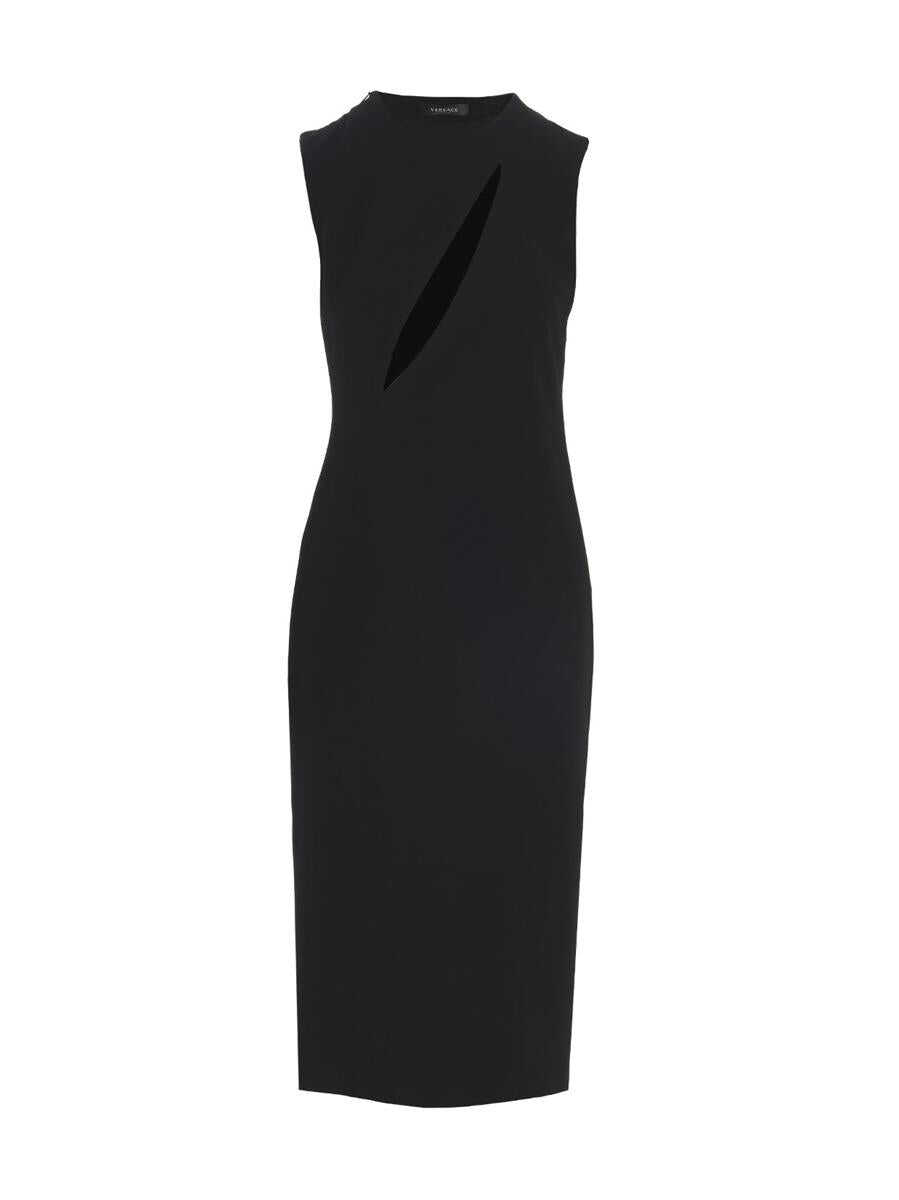 Sleeveless midi dress with cut out details at the front and back, wide side split, round neckline and a side zip closure