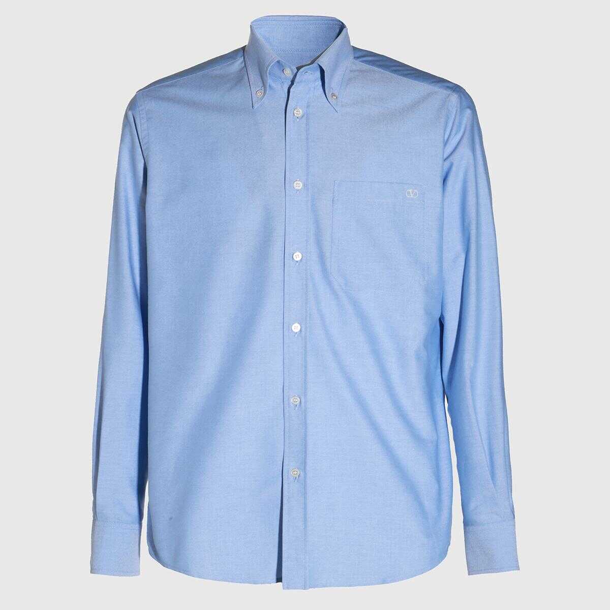 Light blue shirt from Valentino featuring round he, long sleeves, frontal single pocket, buttons fastening and regular vestiiblity.