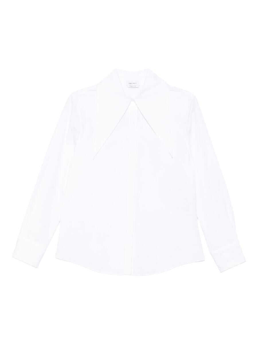 The Alexander McQueen shirt is an iconic piece that reinterprets classicism with a bold touch, made of cotton, it stands out for its oversized collar that gives character and style to the look, in pure white, it has long sleeves and a front button closure, perfect to wear both in formal contexts and in more creative combinations - Alexander McQueen - Shirt - White - Cotton - Oversized collar - Long sleeves - Front button closure