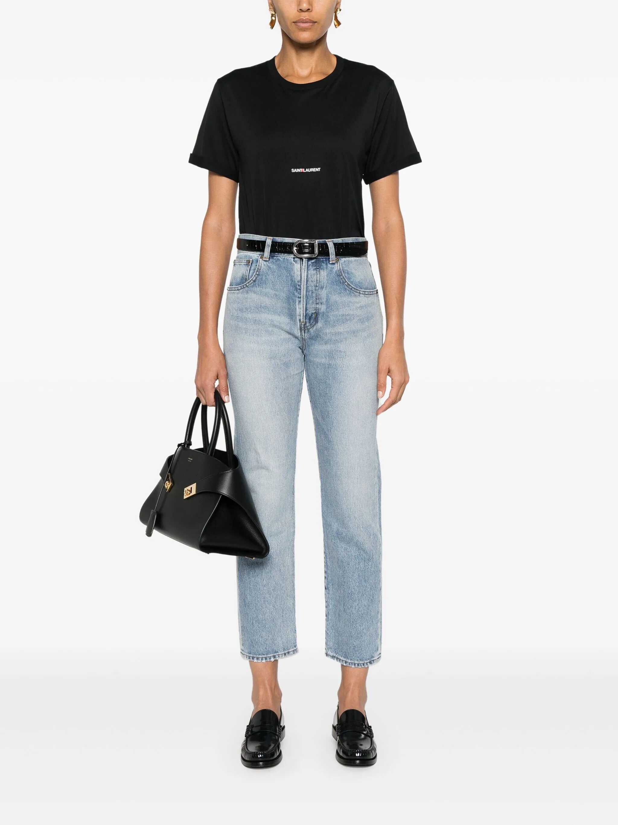 black cotton lightweight jersey crew neck short sleeves logo print to the front straight hem We've partnered with Good On You — an independent agency that rates how brands perform in relation to their impact on the planet, people and animals, with a multi-criteria rating simplified to a five points scale. In order to be awarded our conscious label, larger brands need to score a minimum of four out of five ('Good'), while smaller brands must score at least three out of five ('It's A Start'). This item comes from a brand rated three out of five ('It's A Start') by Good on You at the time it was added on FARFETCH. Please note, this is a brand-level rating and does not guarantee that this product is made with conscious materials. Learn more about what makes a product Conscious on our Conscious Criteria page