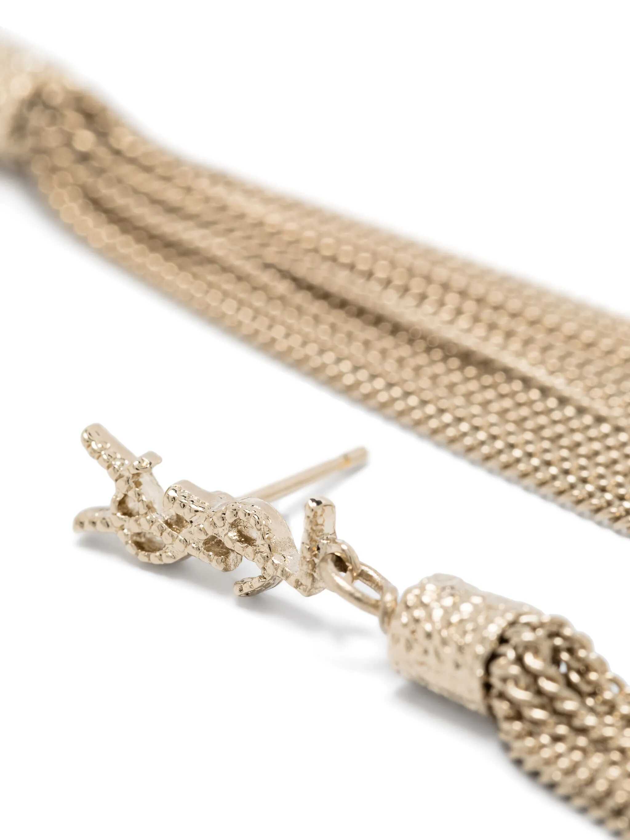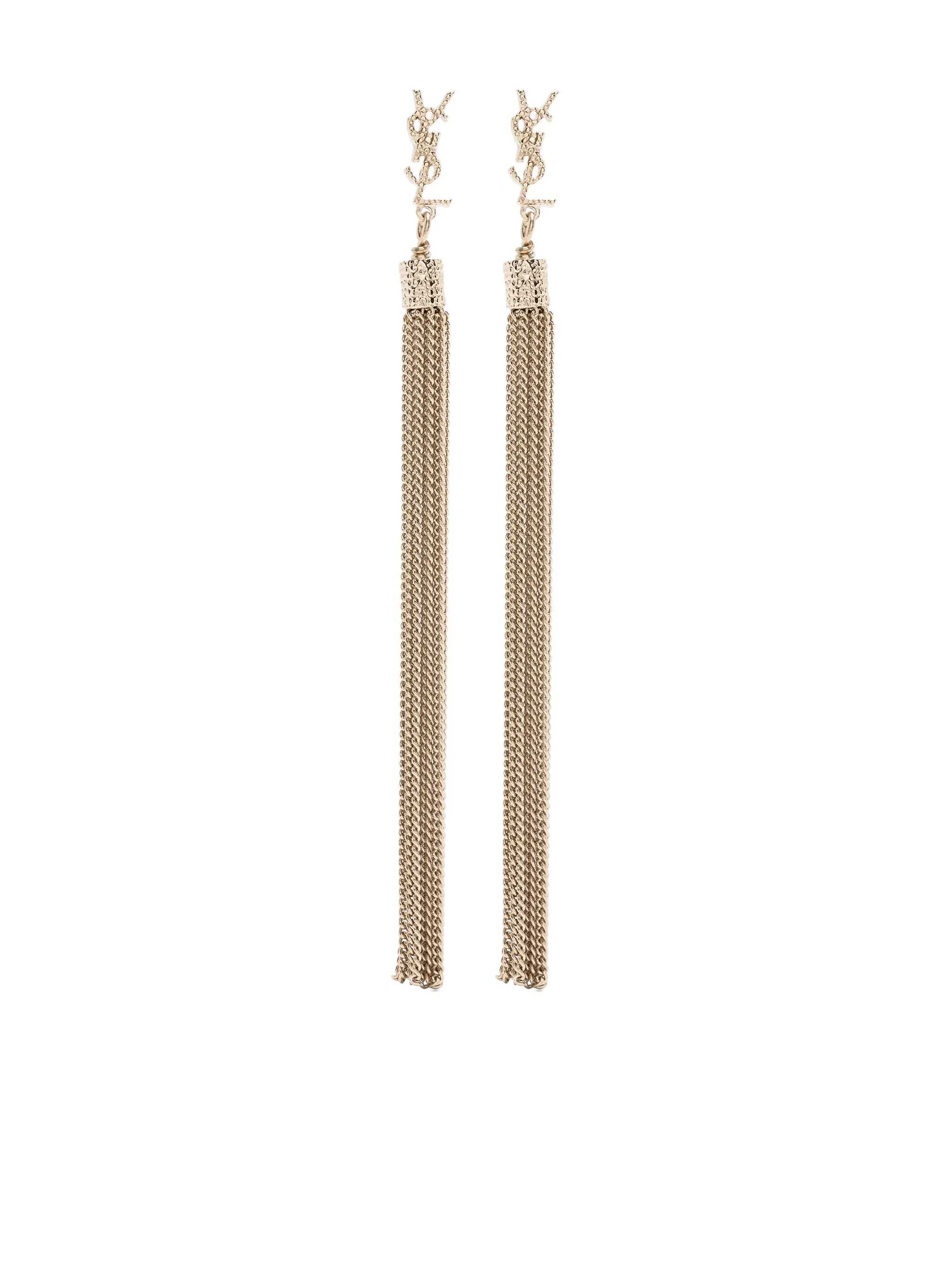 Looking to distract from a bad hair day? These earrings from Saint Laurent are clearly the way forward - in a YSL monogram stud design with a dropped tassel detail, this pair is sure to bring all the attention to your ears....and away from your bird's nest barnet. Distract, divert, overcome. Featuring a butterfly fastening, a monogram stud design and a dropped tassel detail. These earrings come as a pair.
