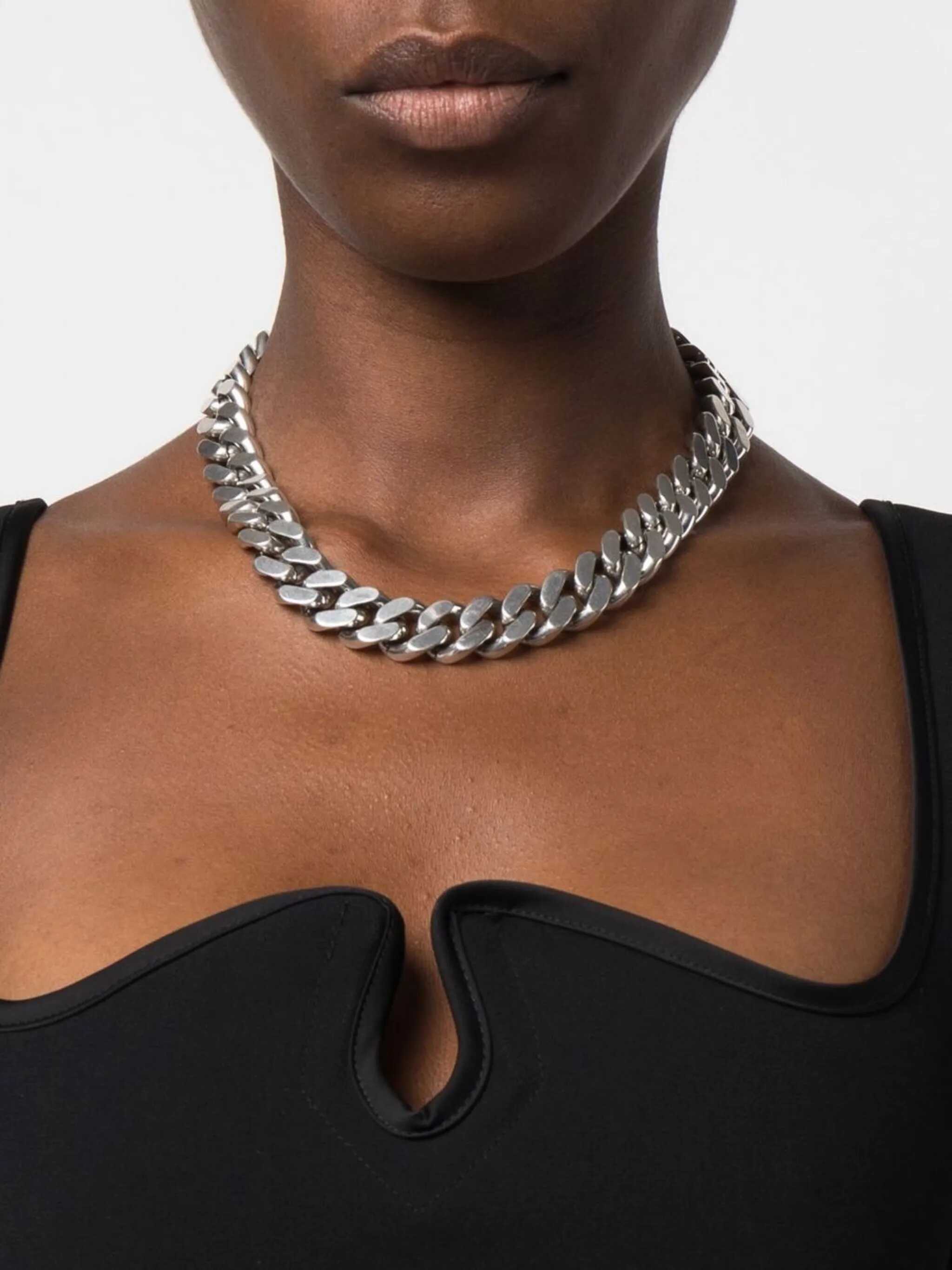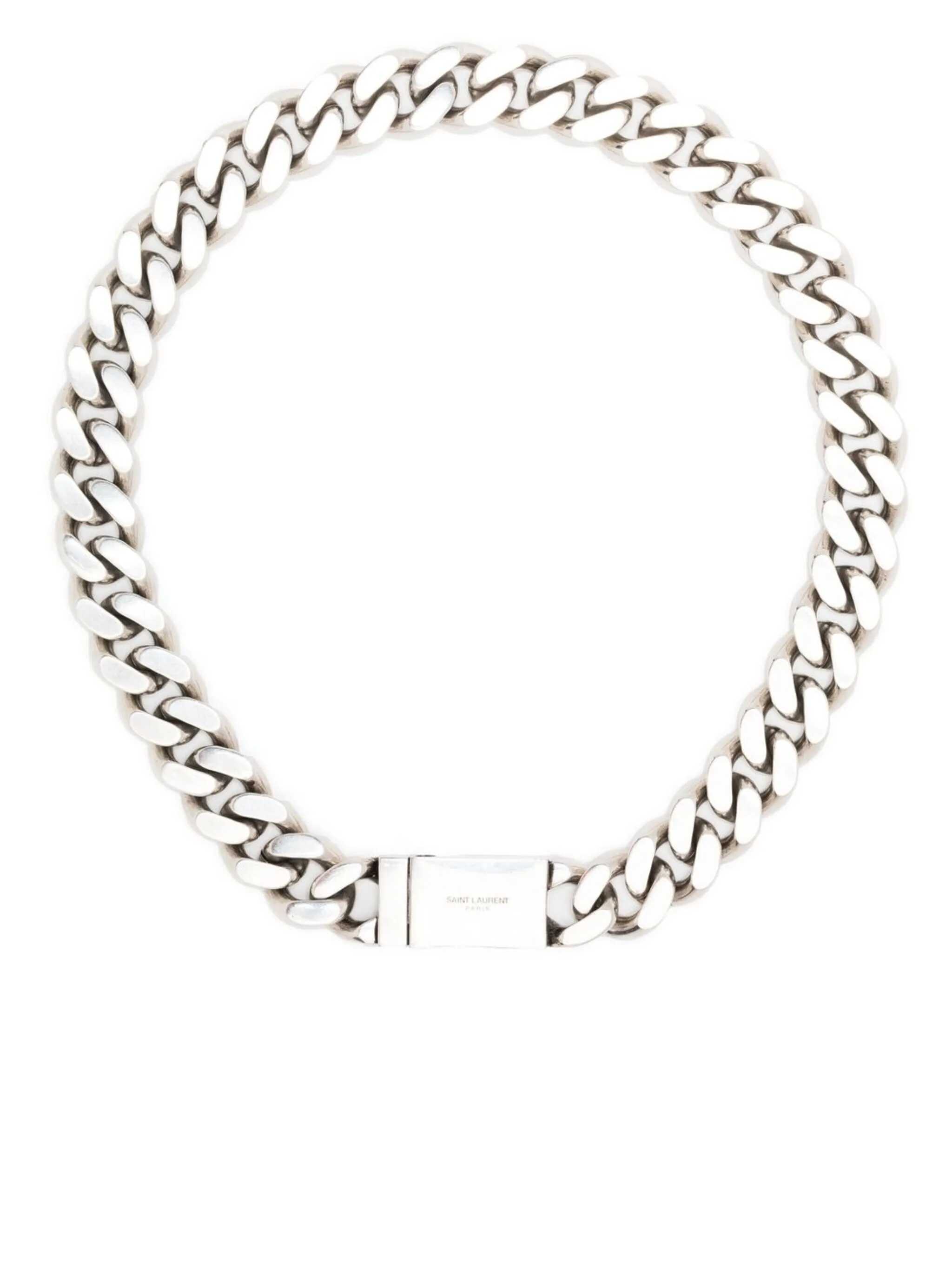 silver-tone metal engraved logo cable-link chain clasp fastening