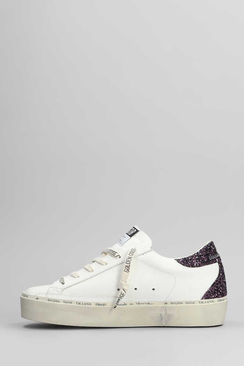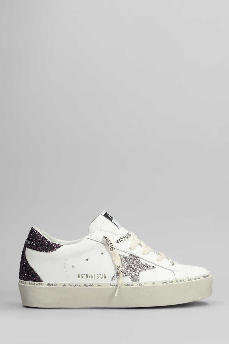 Hi Star Sneakers in white leather, round toe, laces, logo on upper tongue, glitter details, star on side, rubber sole, 100% leather, Made in Italy