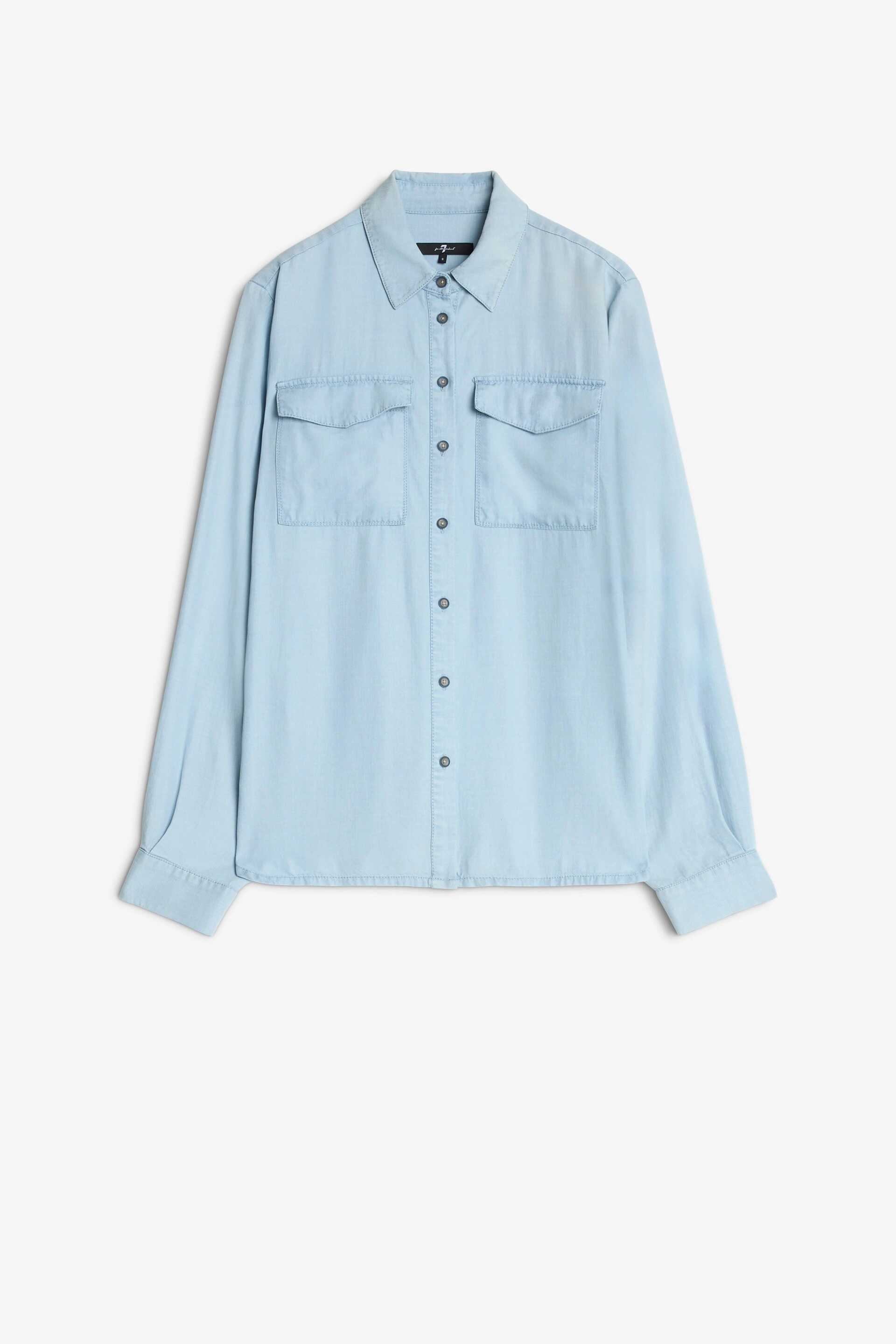 7 FOR ALL MANKIND SHIRT, Crafted from high-quality denim in light blue, this shirt adds a touch of freshness and modernity to every outfit.