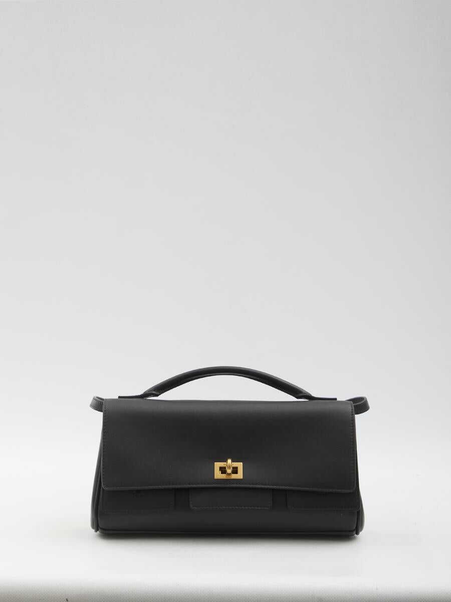 Bel Air small clutch in smooth black calfskin leather. It features a turn-lock closure with engraved logo, top handle, removable shoulder strap, flat external zip pocket with embossed logo on the back, a single internal compartment, and four internal card slots. Dust bag included. Any imperfections in the leather are not to be considered manufacturing defects but rather a characteristic of the material.