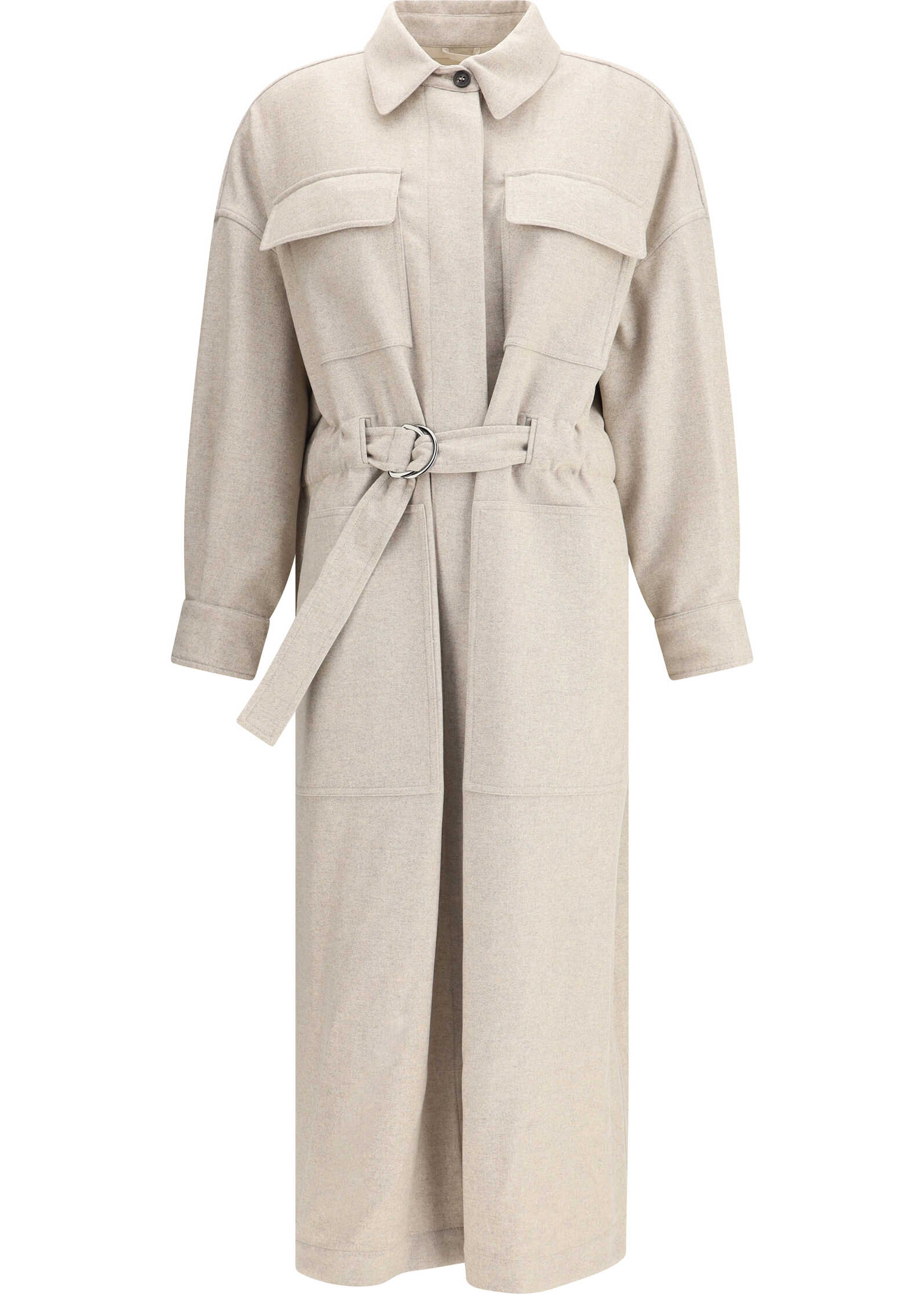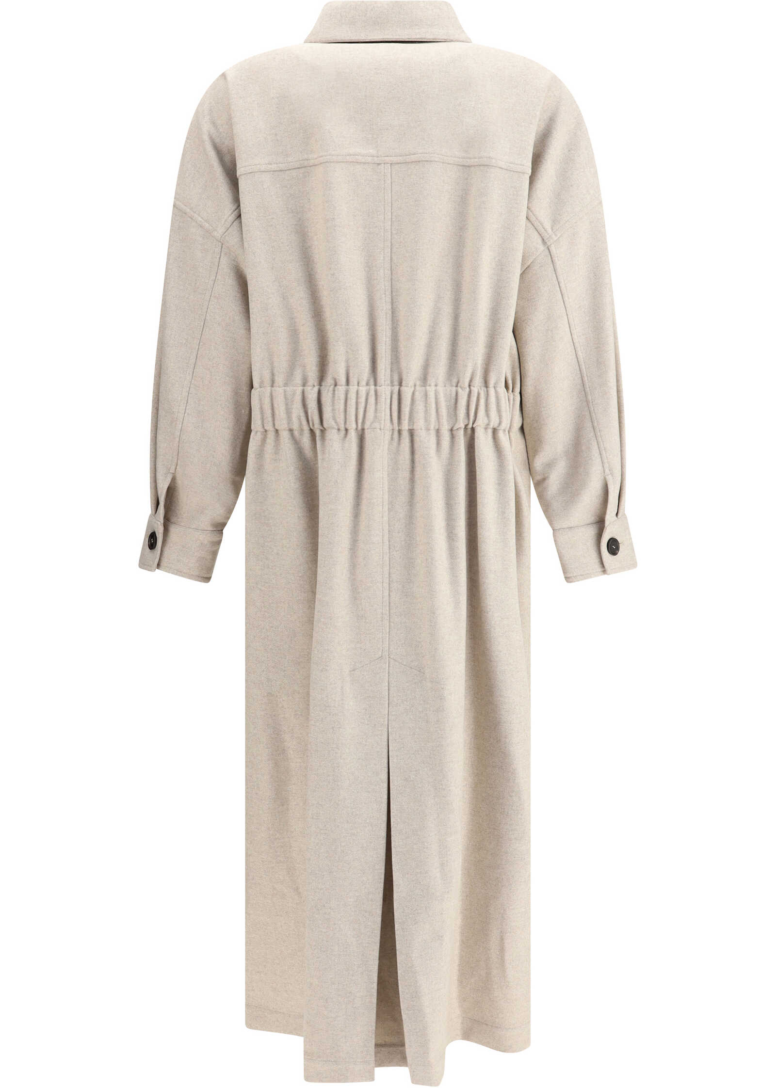 Brunello Cucinelli's Long Coat is a timelessly elegant garment perfect for any occasion. Featuring a classic collar and a front button closure, it has two flap patch pockets on the chest and two side patch pockets, combining practicality and style. The matching, adjustable waistband allows you to define the silhouette, adding a touch of sophisticated personalization to the design. A versatile and refined garment that combines warmth and luxury.