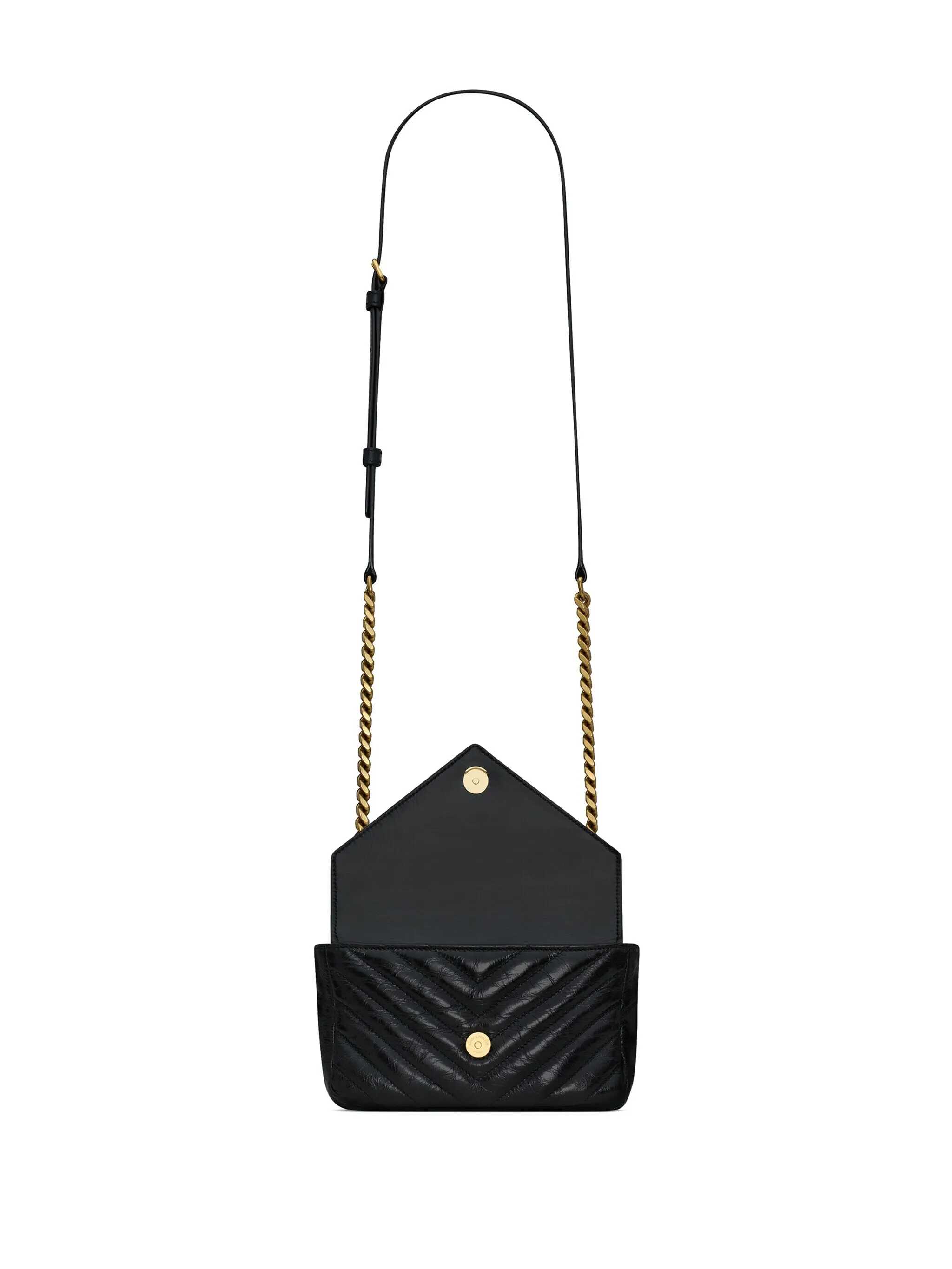 black calf leather quilted high-shine finish gold-tone hardware appliqué logo single top handle foldover top with magnetic fastening embossed internal logo main compartment internal slip pocket slip pocket to the rear This piece comes complete with a protective dust bag.