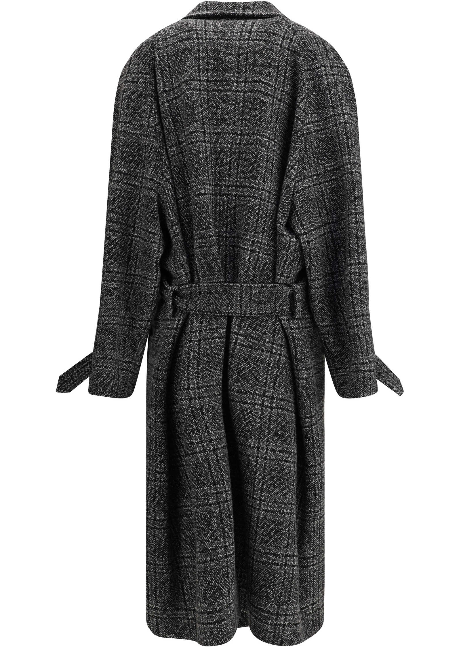 Balenciaga's Long Coat is a statement piece that combines elegance and character. Crafted from wool with a refined checked design, it features welt pockets on the front and distinctive details such as belt loops on the collar and sleeve. The front belt closure enhances the silhouette, while the classic collar without a hood lends timeless elegance.