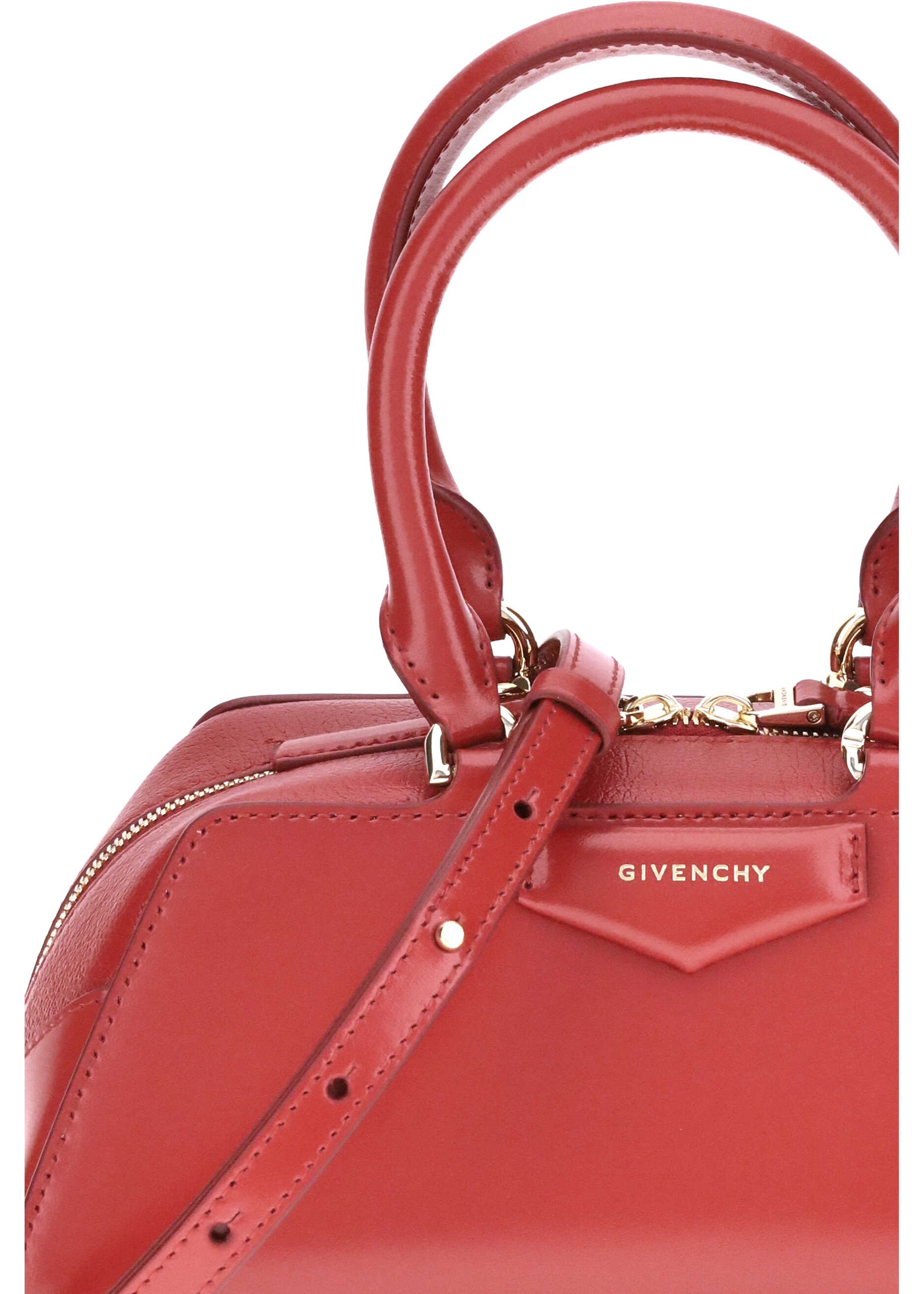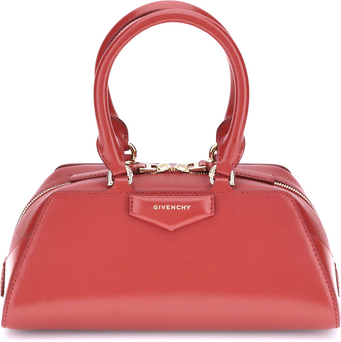 Givenchy's Antigona East West mini Handbag combines elegance and practicality in a compact size. Equipped with two articulated leather handles with four D-rings to attach the adjustable and removable shoulder strap, it is closed by a zipper that protects the single main compartment. A pentagonal signature embossed appliqué stands out on the front, while metallic details with a gold finish complete the design with refined brilliance.
