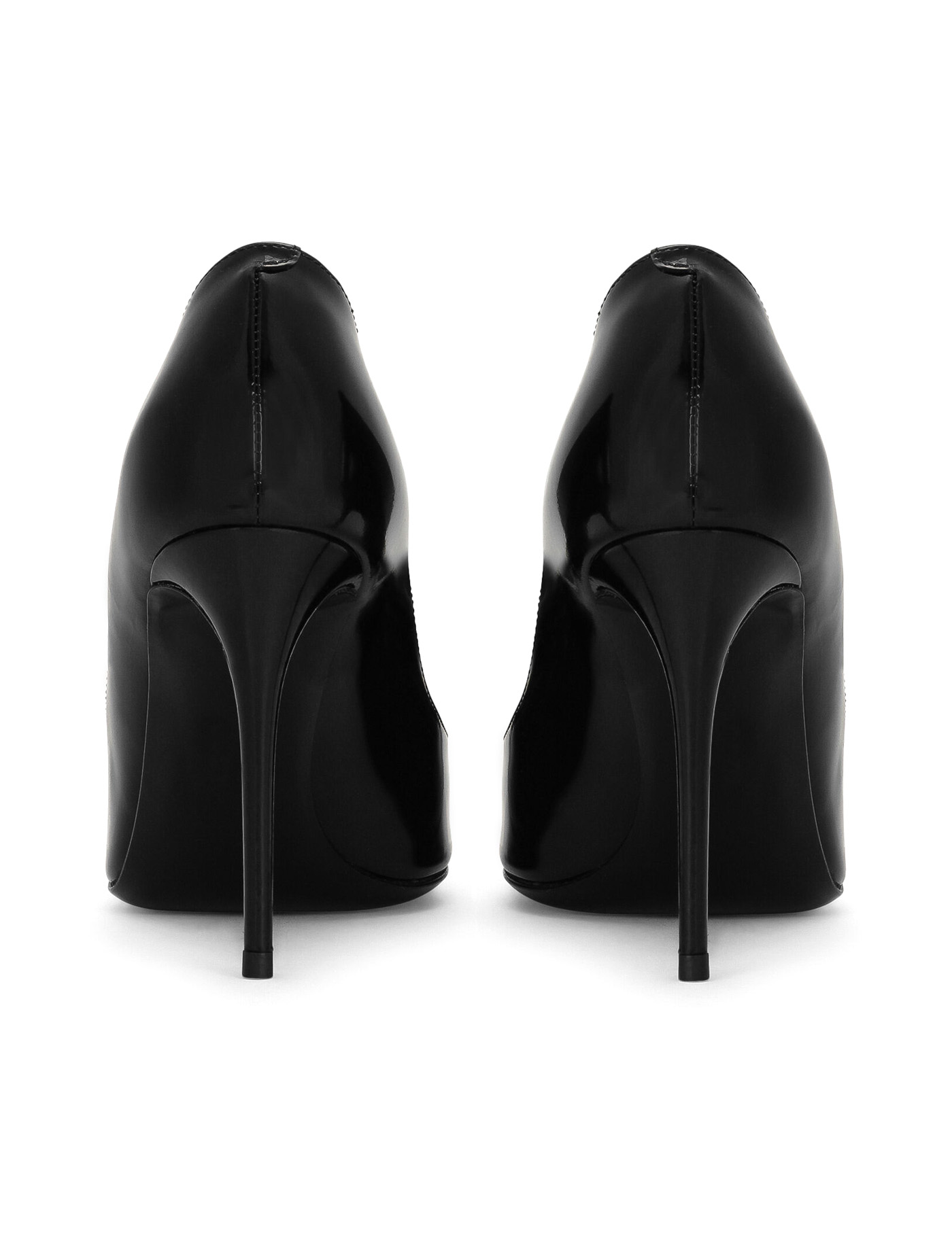 Dolce & Gabbana pumps crafted in patent leather and embellished with gold metal DG monogram with cut-out applied to the toe. Leather footbed and leather sole.
