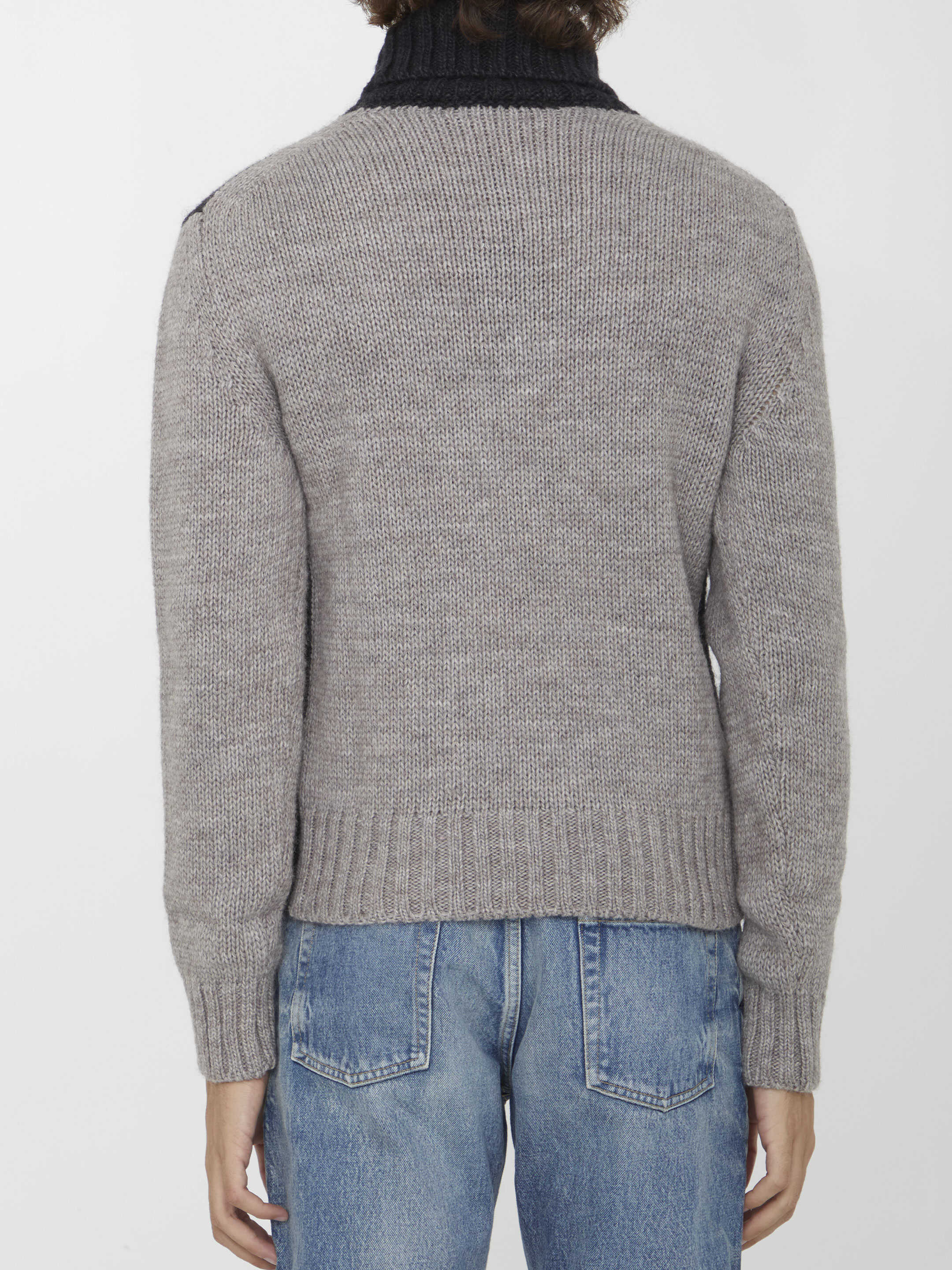 High-neck jumper in black and grey wool blend. Ribbed finishes. Regular fit.
