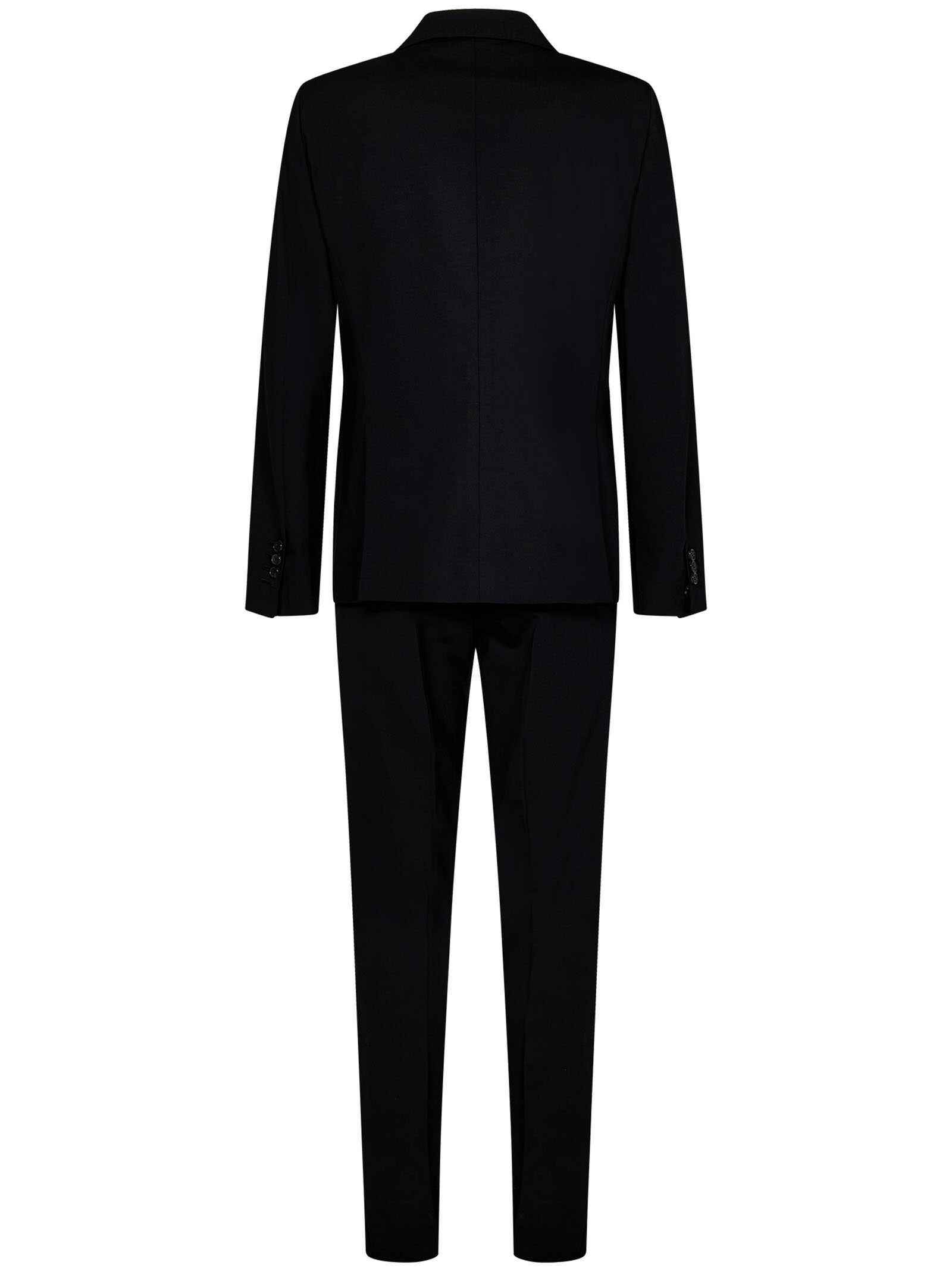 Upgrade your style with this sleek black suit from DSQUARED2. Made from 95% virgin wool and 5% elastane, it offers a slim-fit design with a single-breasted blazer. Perfect for formal occasions, this dress suit will make you stand out in the crowd. Get a sophisticated and elegant look with this Dsquared2 Black Dress suit.