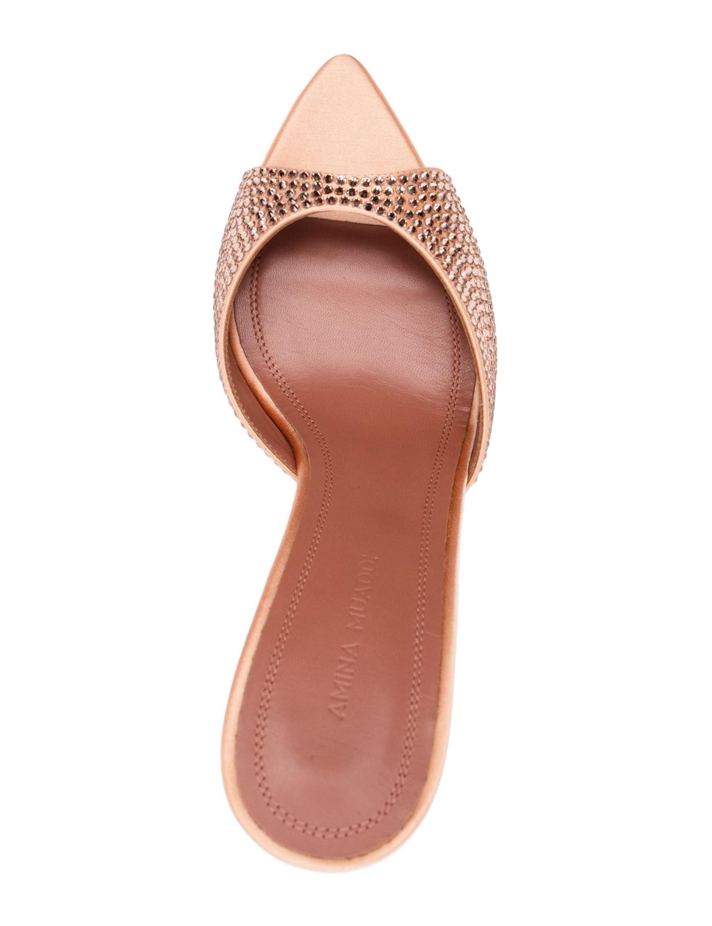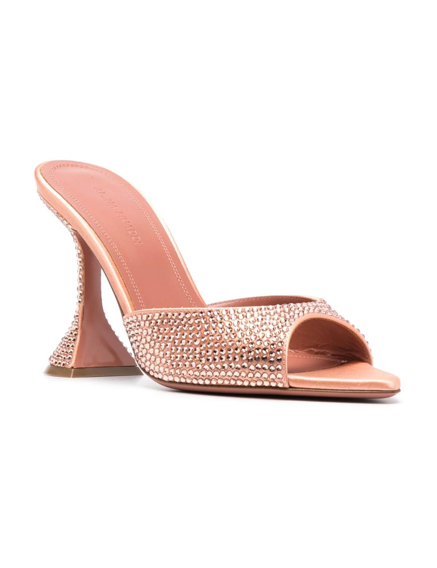 These Amina Muaddi Caroline mules are instantly recognisable by their signature flared heels and scores of tonal crystal embellishments. They’re crafted from lustrous satin in a peachy orange hue with sleek point toes that enhance their sculptural bent.