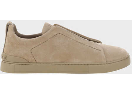 Calfskin Sneakers by Zegna, suede leather design, flat sole, slip-on style, press-stamped logo insole.