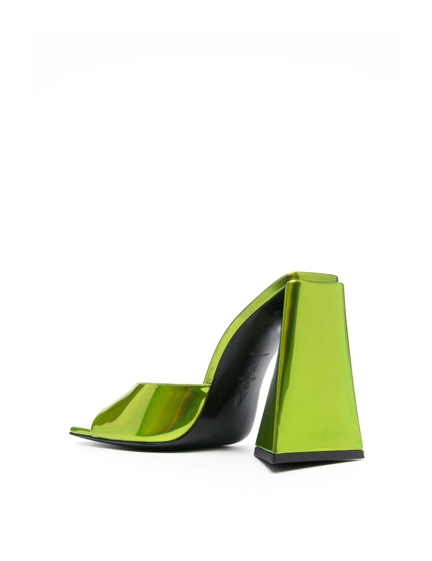 Crafted from patent leather with an iridescent finish, these Devon mules showcase The Attico's signature bold aesthetic. Their lime-green colourway, chunky sculptural heel and square-toe silhouette continue the theme.
