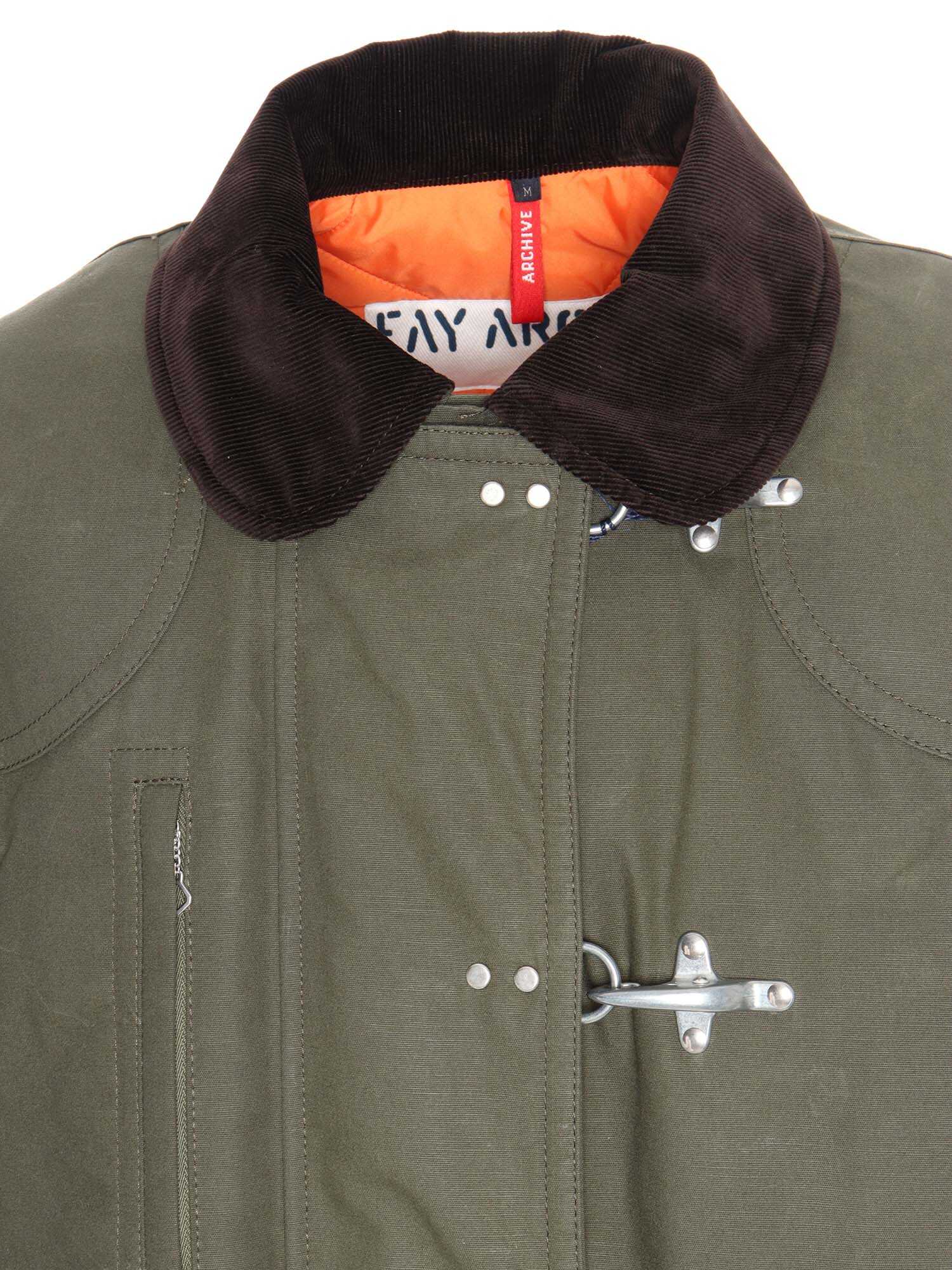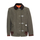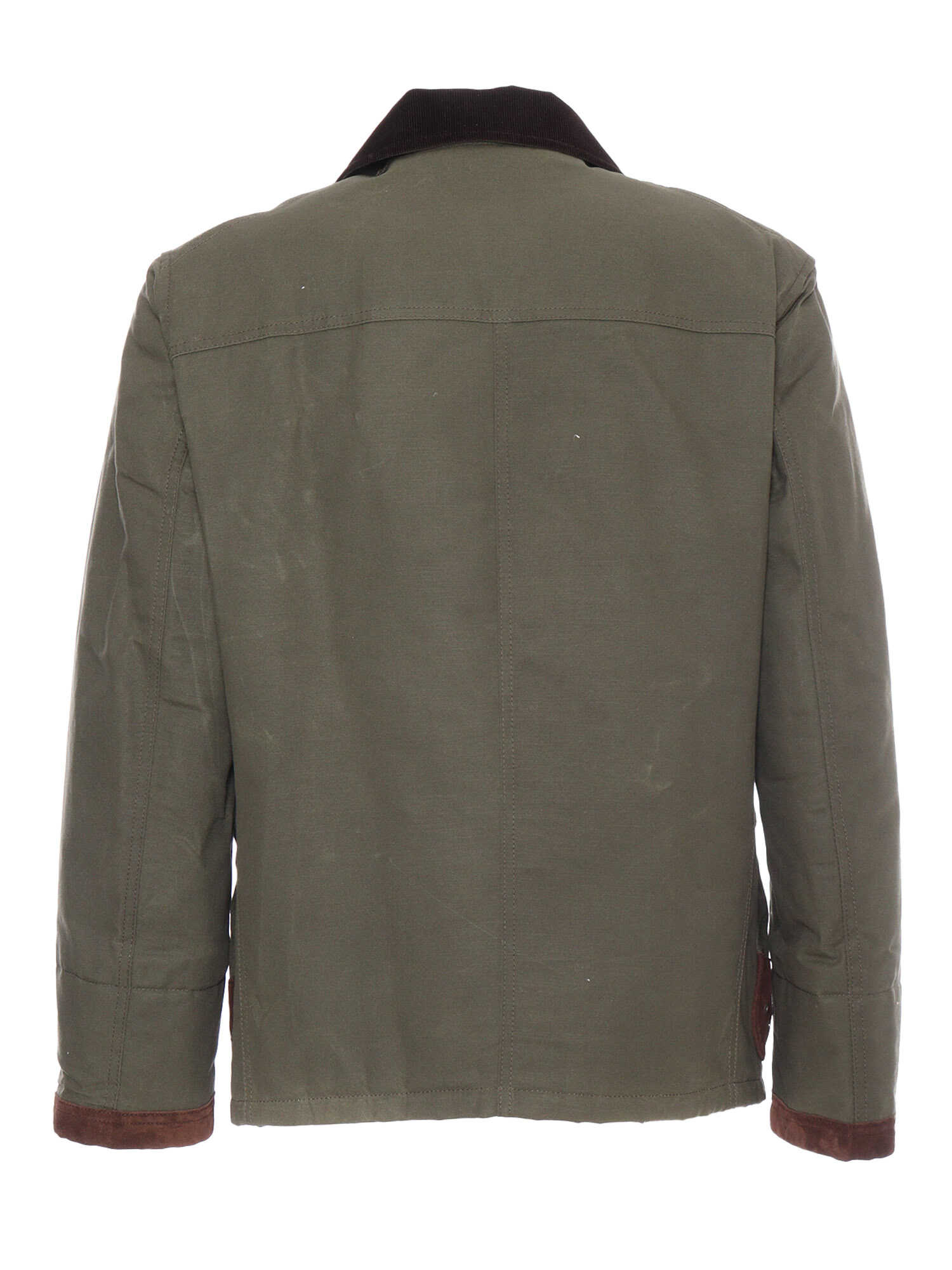 Cotton and calf leather jacket, 4 silver finish hooks, contrasting collar, hidden zip front fastening, chest pocket with zip, front pockets with flap