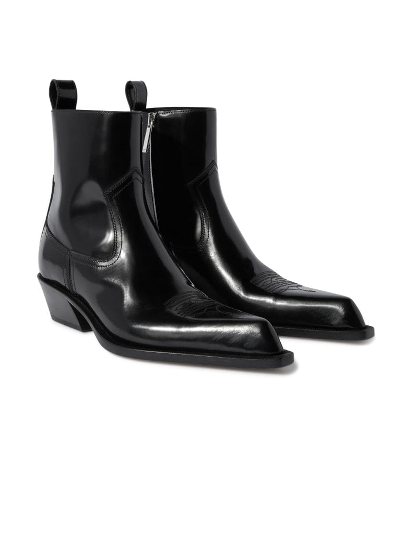 Leather texan ankle boots by Off-White with tone-on-tone stitching, side zippered closure, leather interior and sole.