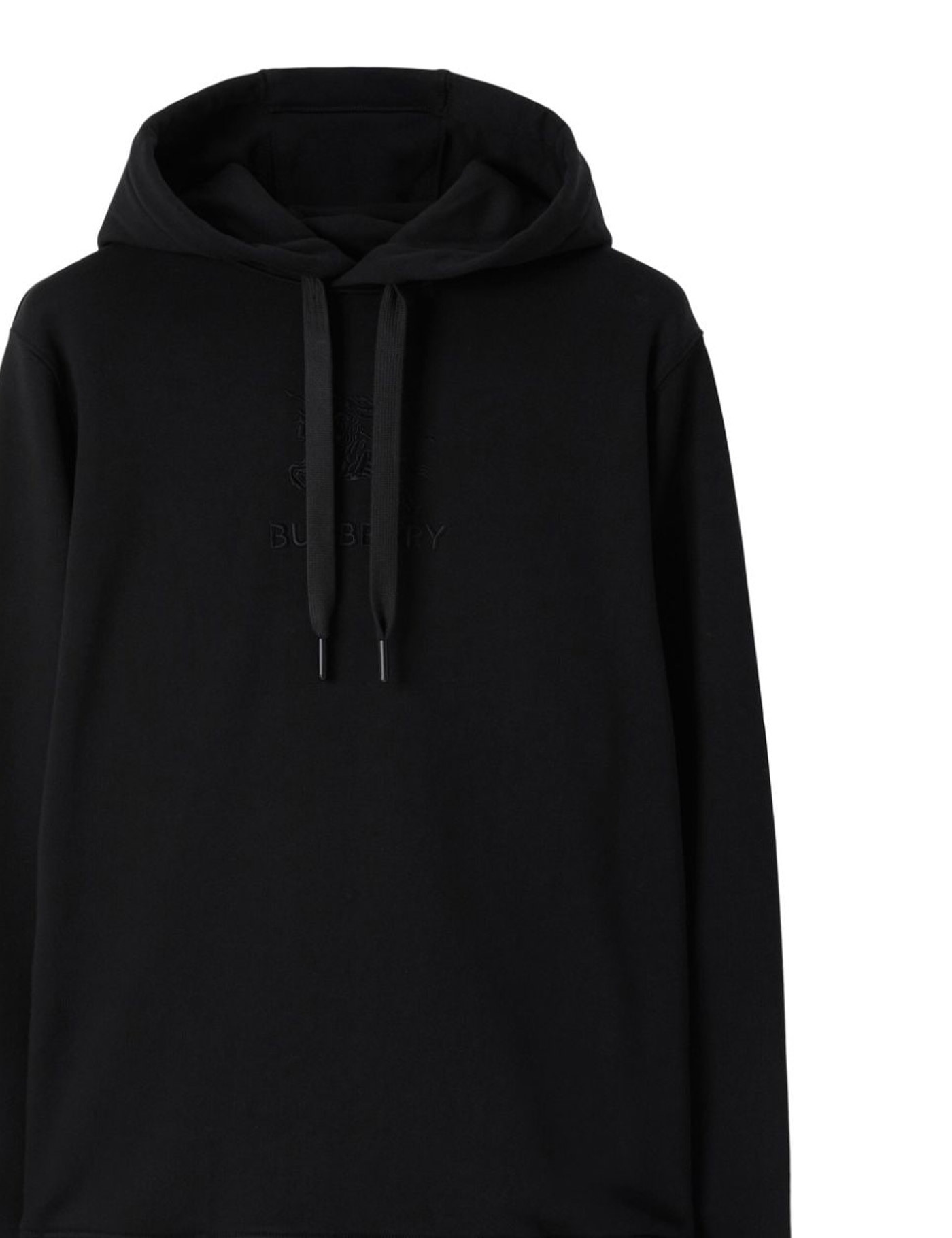 Crafted from cotton French terry to a relaxed fit, this sweatshirt showcases the signature EKD motif embroidered along with Burberry lettering on the front. It is designed with a drawstring hood and side pockets, and finished with ribbed trims. The model is 187 cm tall and wears a size L.