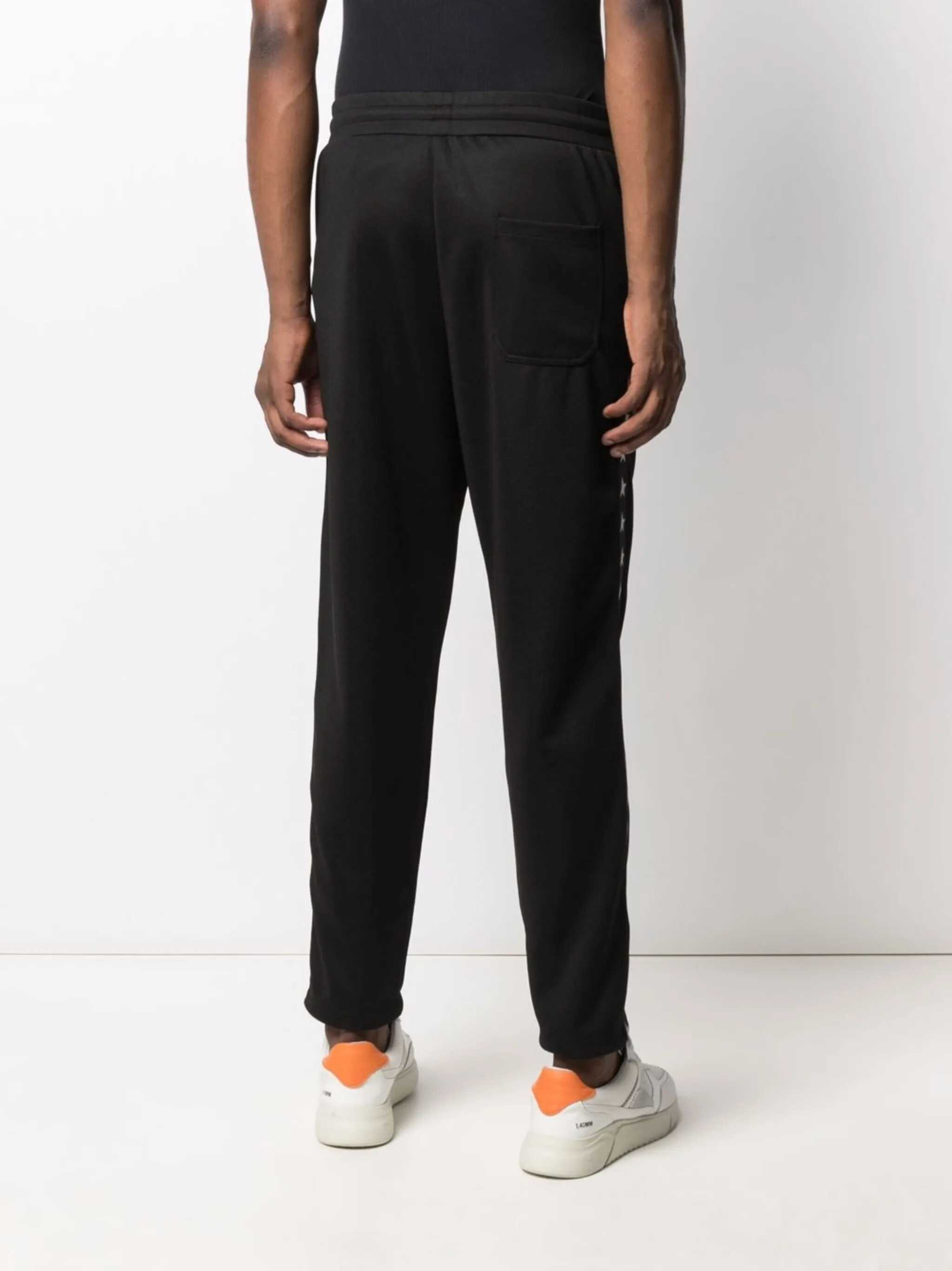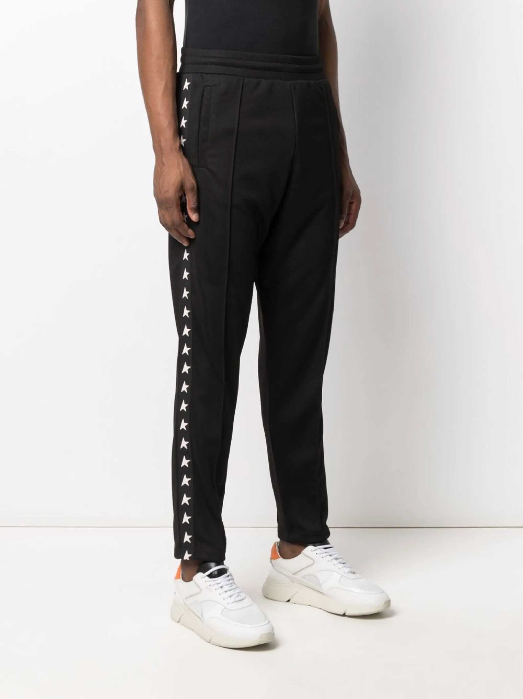 Golden Goose Two-tone black/white trousers, side stripe details, star print, elastic waistband, corduroy details, two side slit pockets, back patch pocket. When purchasing this unisex item, please note that it is listed in standard men's sizes.