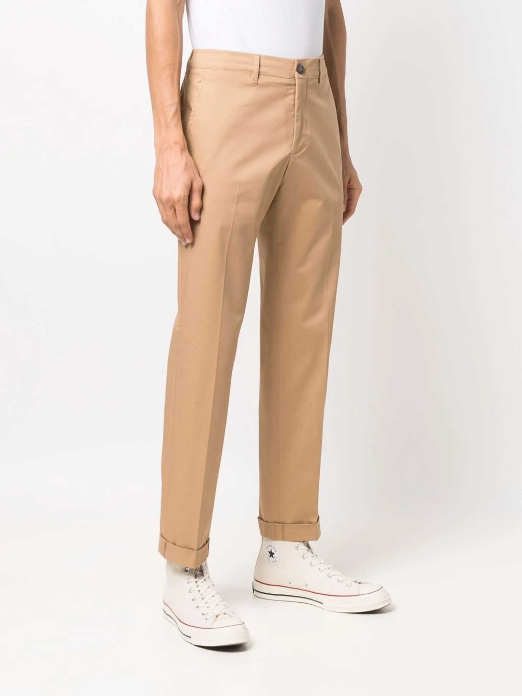 Trousers Golden Goose made of Camel colored stretch cotton. Belt loops. Side america pockets. Zip button closure. Double star applied on the back. Welt pockets with button on the back.