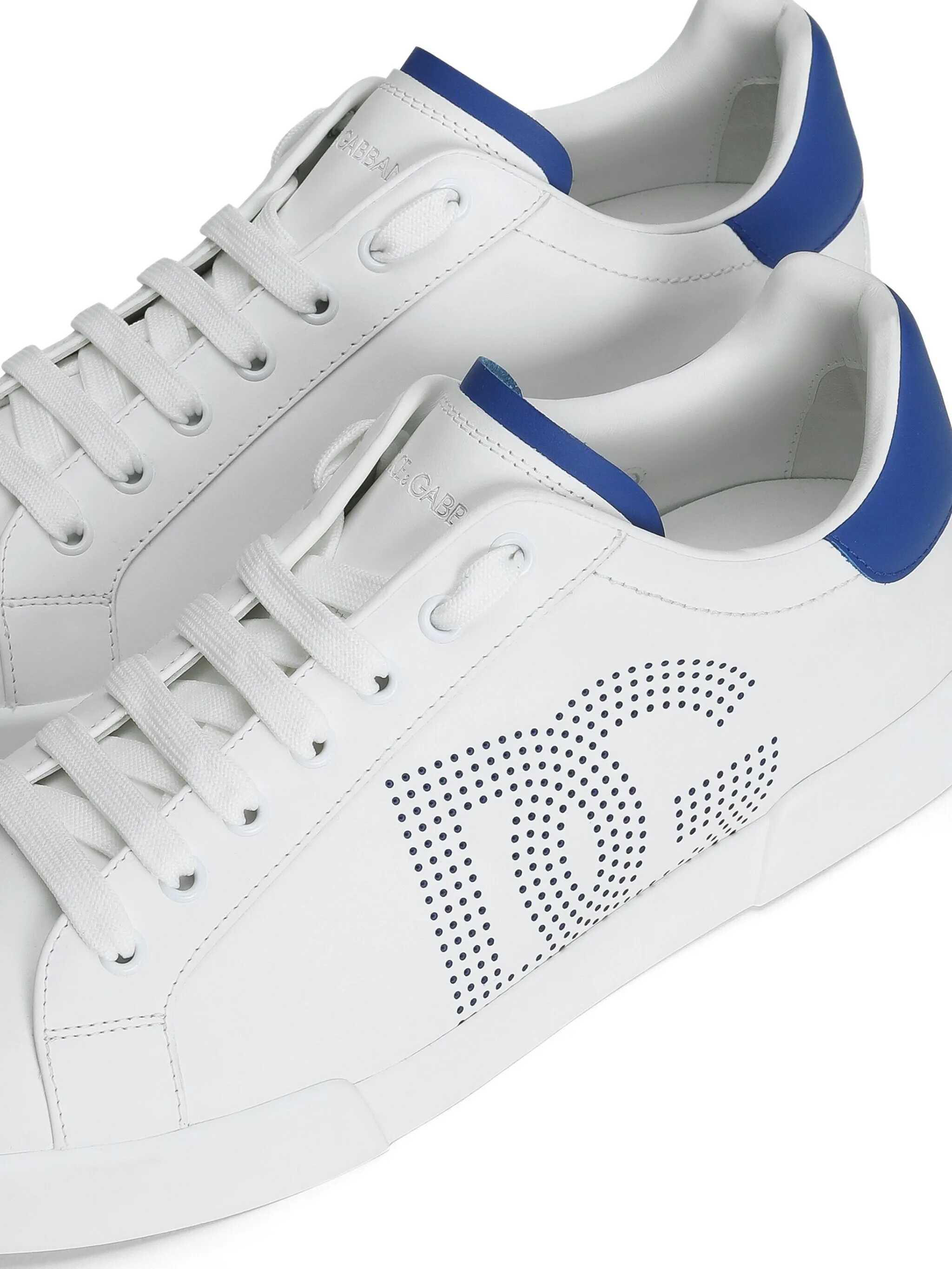 Sneakers from the Portofino line in nappa leather White and blue color Contrasting black details Round toe DG logo on the side Leather interior Leather insole with logo label Rubber sole