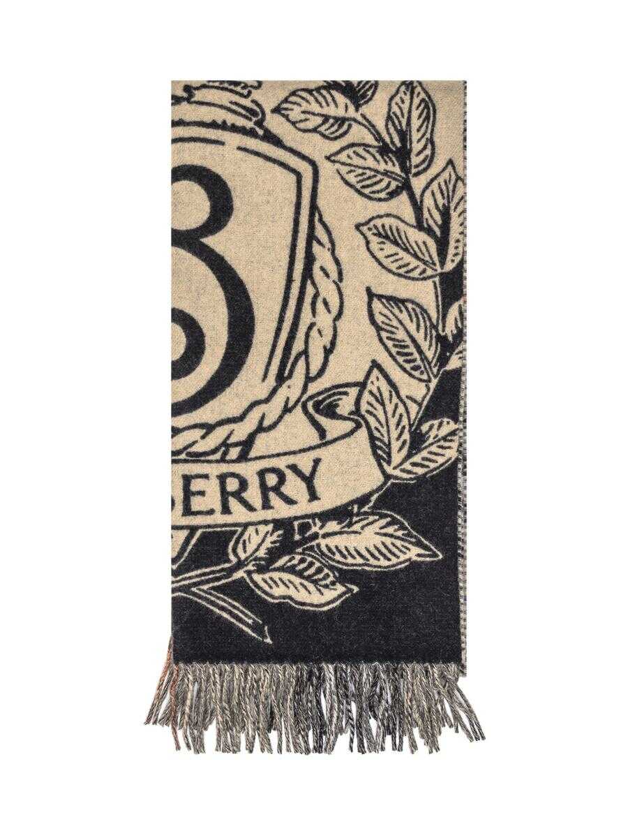 Burberry scarf in soft beige and black wool, embellished with maxi logo and leaf pattern. Width: 214Height: 25