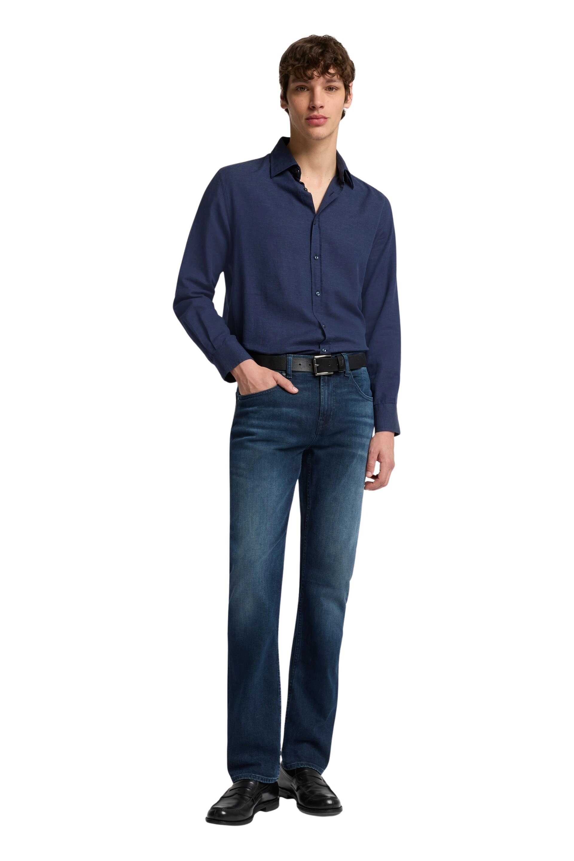 7 For All Mankind jeans in dark blue denim, featuring a modern and versatile fit. Made from comfortable stretch fabric for an effortlessly polished, casual style.