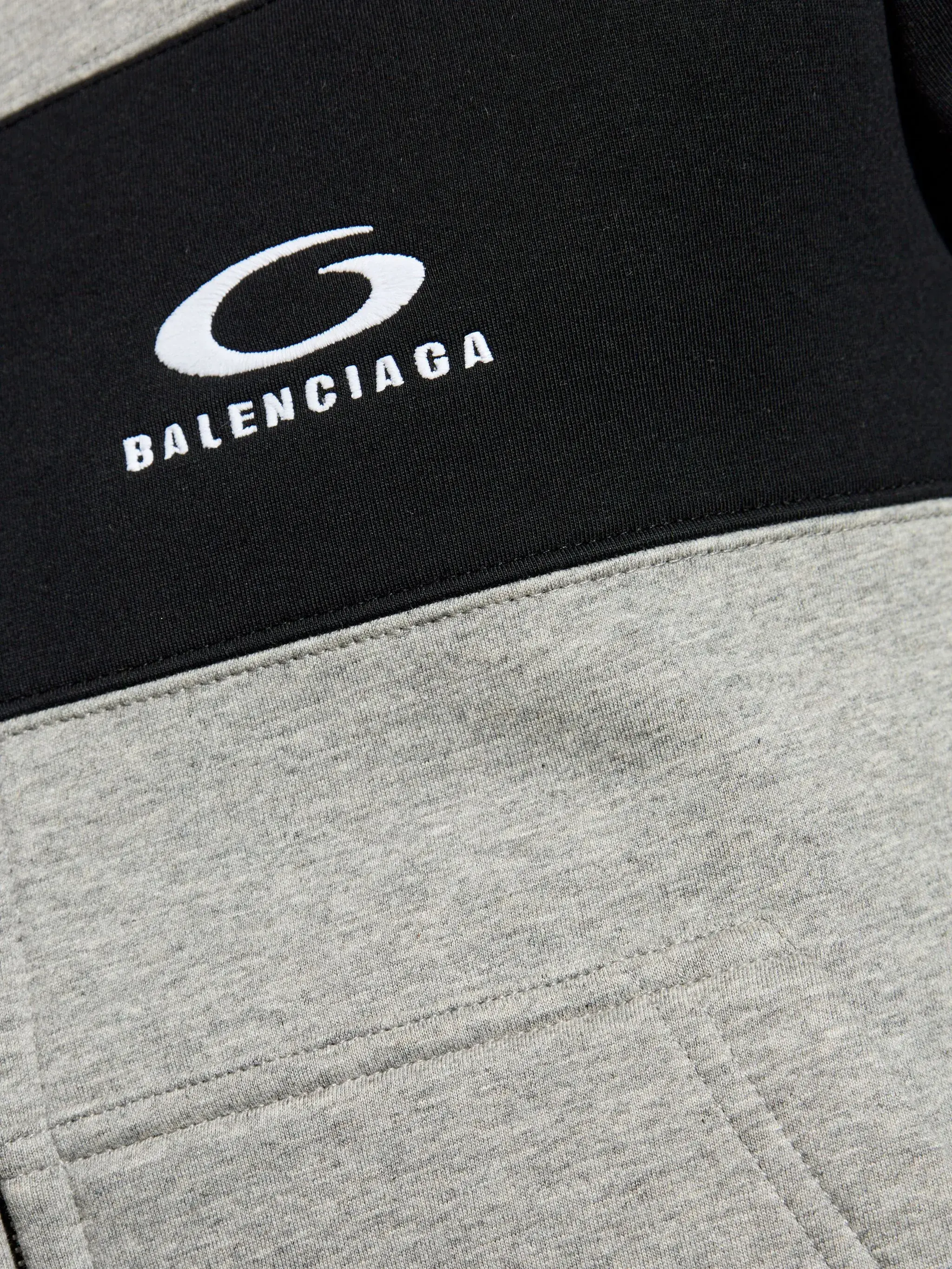 Grey cotton sweatshirt from Balenciaga featuring long sleeves, hood, zip fastening, logo and pockets.