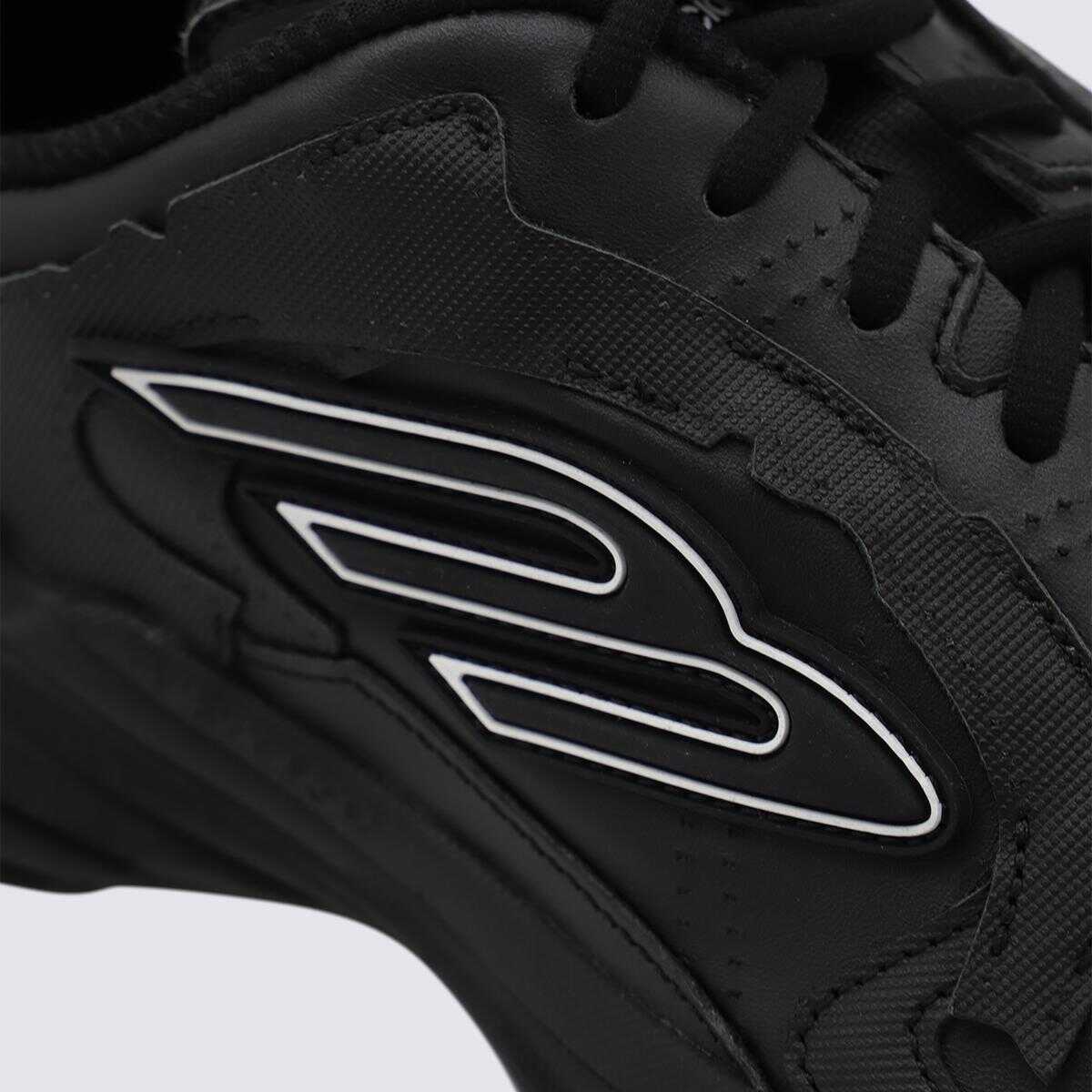 Black leather Monday sneakers from Balenciaga featuring round toe, visible stitchings, logo, loop on the heel and rubber sole.