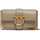 The Calfskin Love One Shoulder Bag by Pinko, interlocking front fastening, adjustable and sliding chain shoulder strap, iconic Love Birds buckle embossed on the front, double internal compartment, internal zipped pocket, flat card pocket, iconic tone-on-tone embroidered brand monogram on the back.