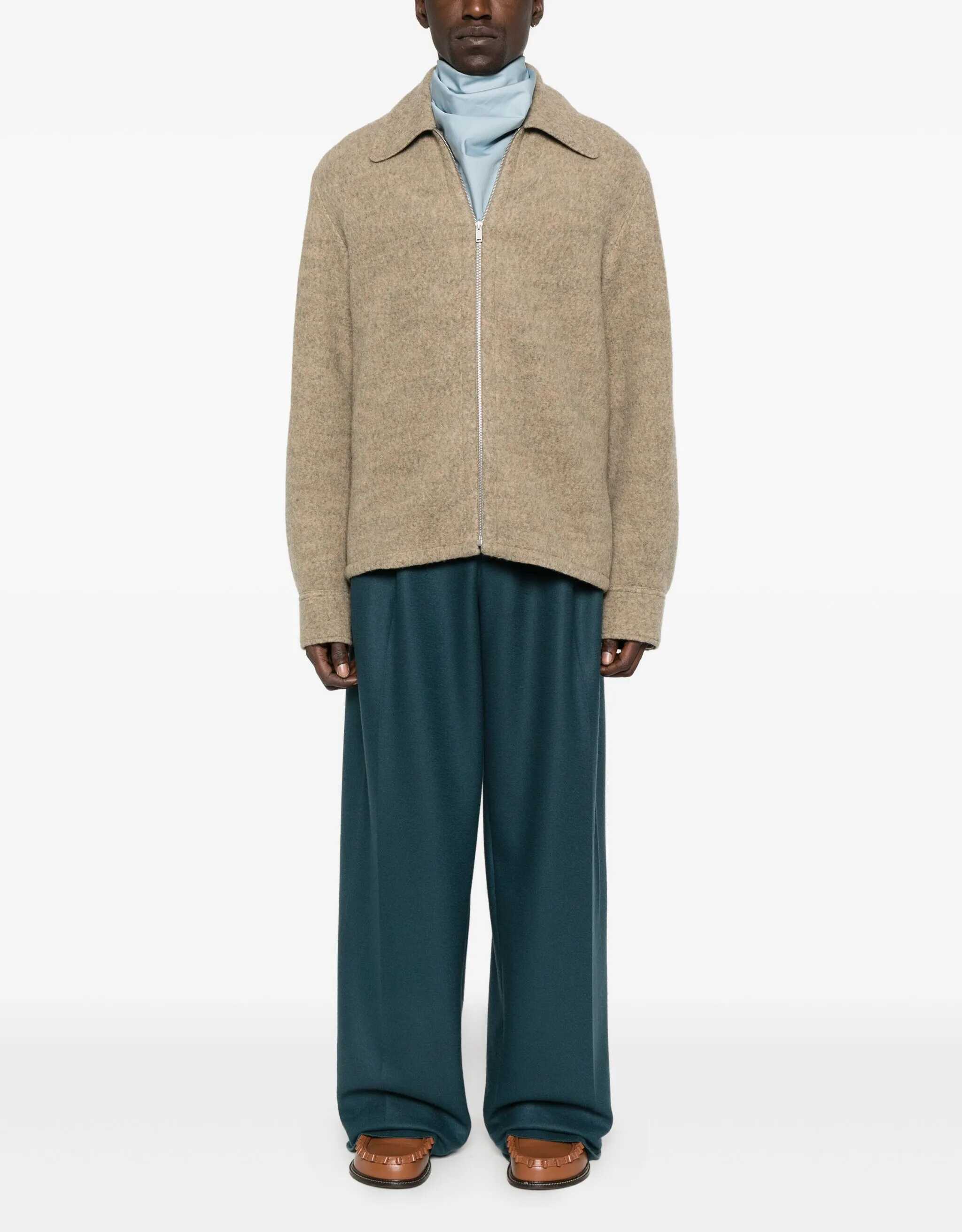 Jil Sander's Wool Jacket is a sleek, minimalist piece featuring a V-neckline and zipper closure. Long sleeves and side slits complete the design, combining soft texture with a modern, refined style.