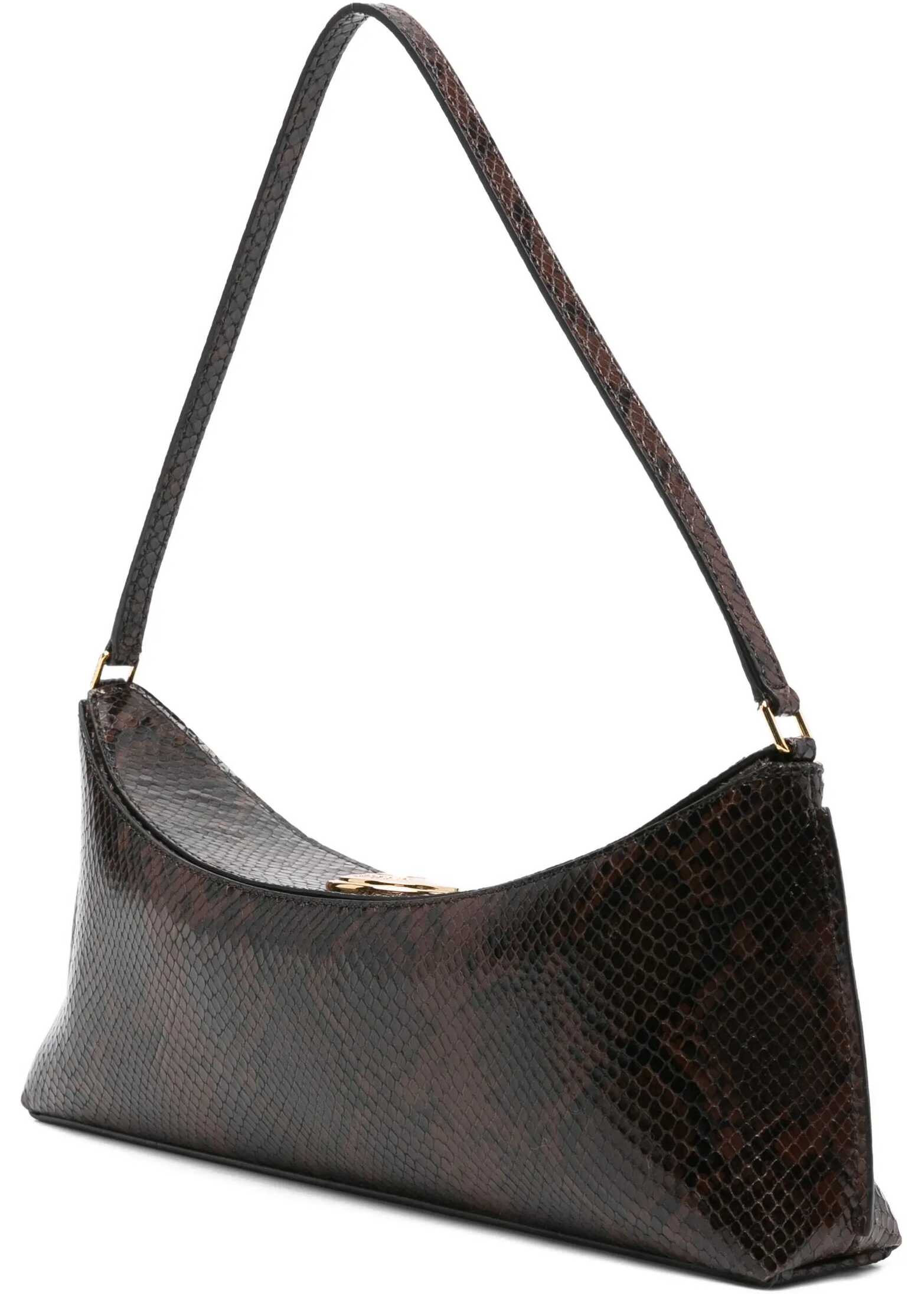 The Ovalo Shoulder Bag by Jacquemus is made of python-effect embossed leather and features a slim shoulder strap and flap with magnetic closure, embellished with a large engraved snap button. Fully lined in cotton, it includes an interior pocket dedicated to credit cards, combining elegance and functionality.