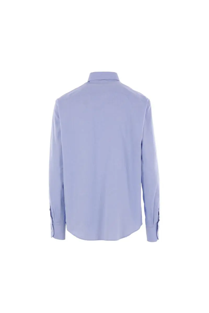 Valentino Garavani shirt crafted from light blue cotton Oxford. Featuring a button-down collar, front button closure, a chest patch pocket with VLogo embroidery, long sleeves with buttoned cuffs, and a rounded hem.