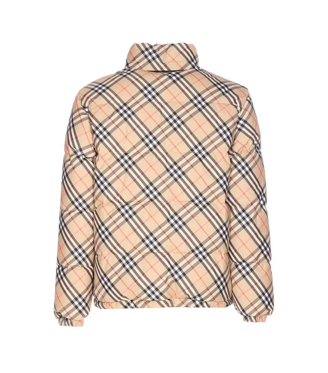 Burberry Beige Down Jacket, Zip Closure On The Front, Long Sleeves, High Neck, One Side With Check Motif, Padded, US SIZE