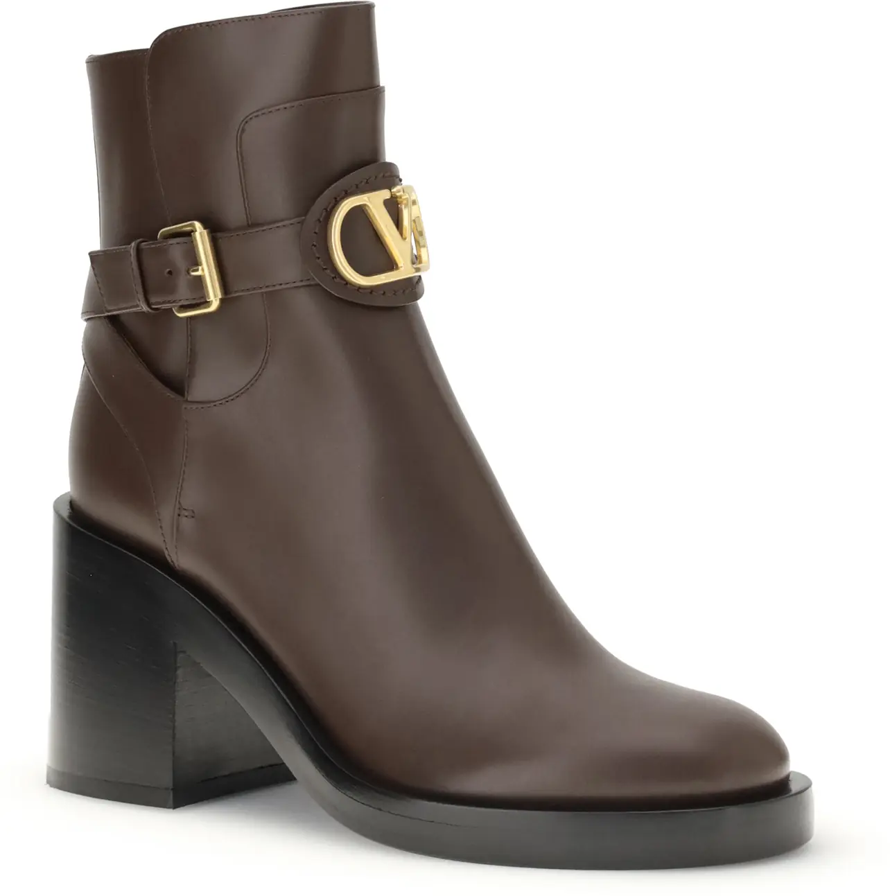 Valentino Garavani's VLogo Ankle Boots express decisive elegance thanks to the VLogo Signature decoration with an antique-effect brass finish, the distinctive emblem of the maison. Equipped with an internal side zipper for a practical fit, they feature a leather bottom complemented by a non-slip rubber half sole, ensuring stability and comfort without sacrificing style.
