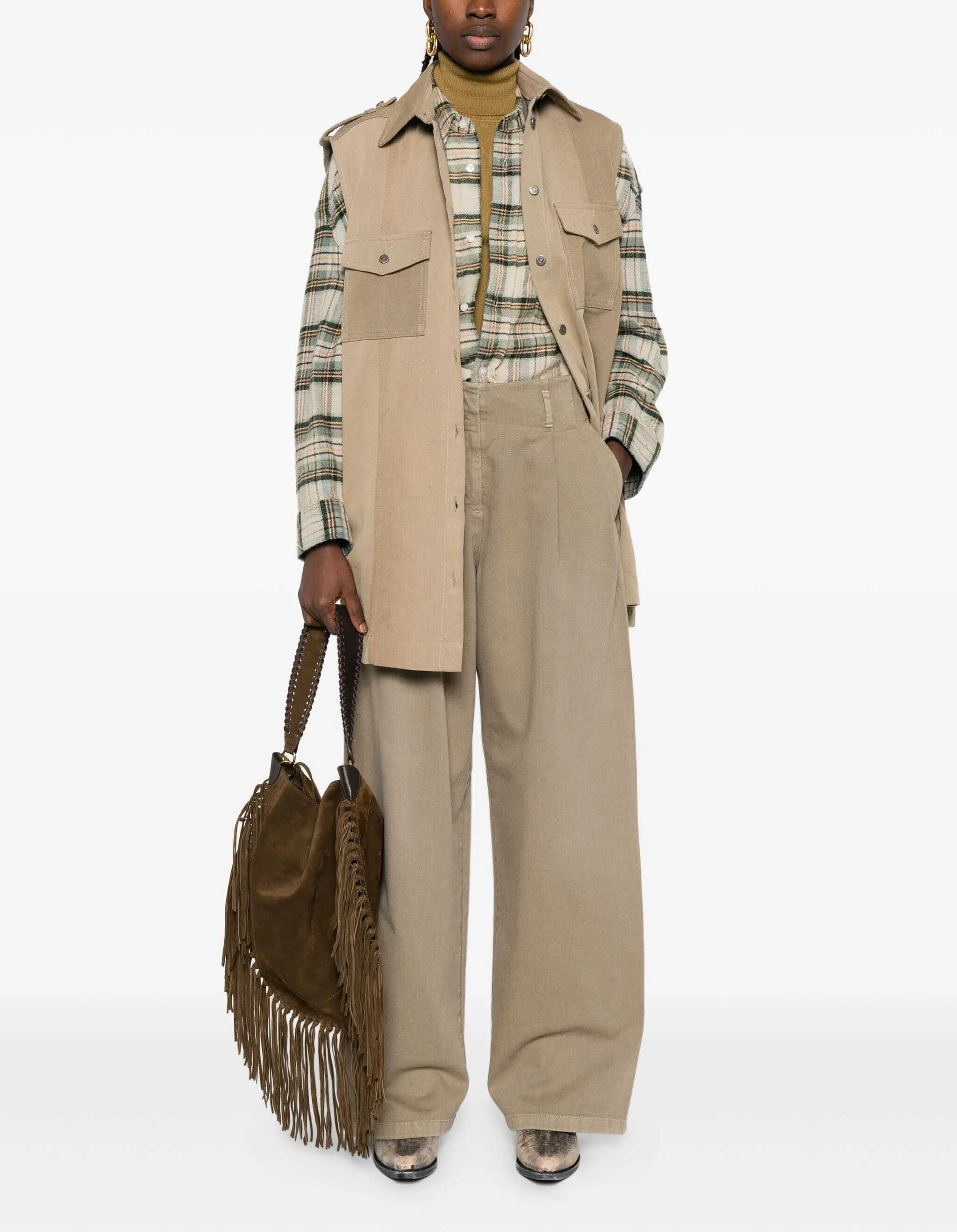 Golden Goose's oversized wide leg Pants are a garment with a bold, modern spirit. Made of denim, they feature a loose, flowing fit with belt loops at the waist and a front zipper and button closure. The design is enriched with two side welt pockets, two back pockets and two front darts, giving structure and a tailored touch to the model. Perfect for those seeking a blend of comfort and contemporary style.