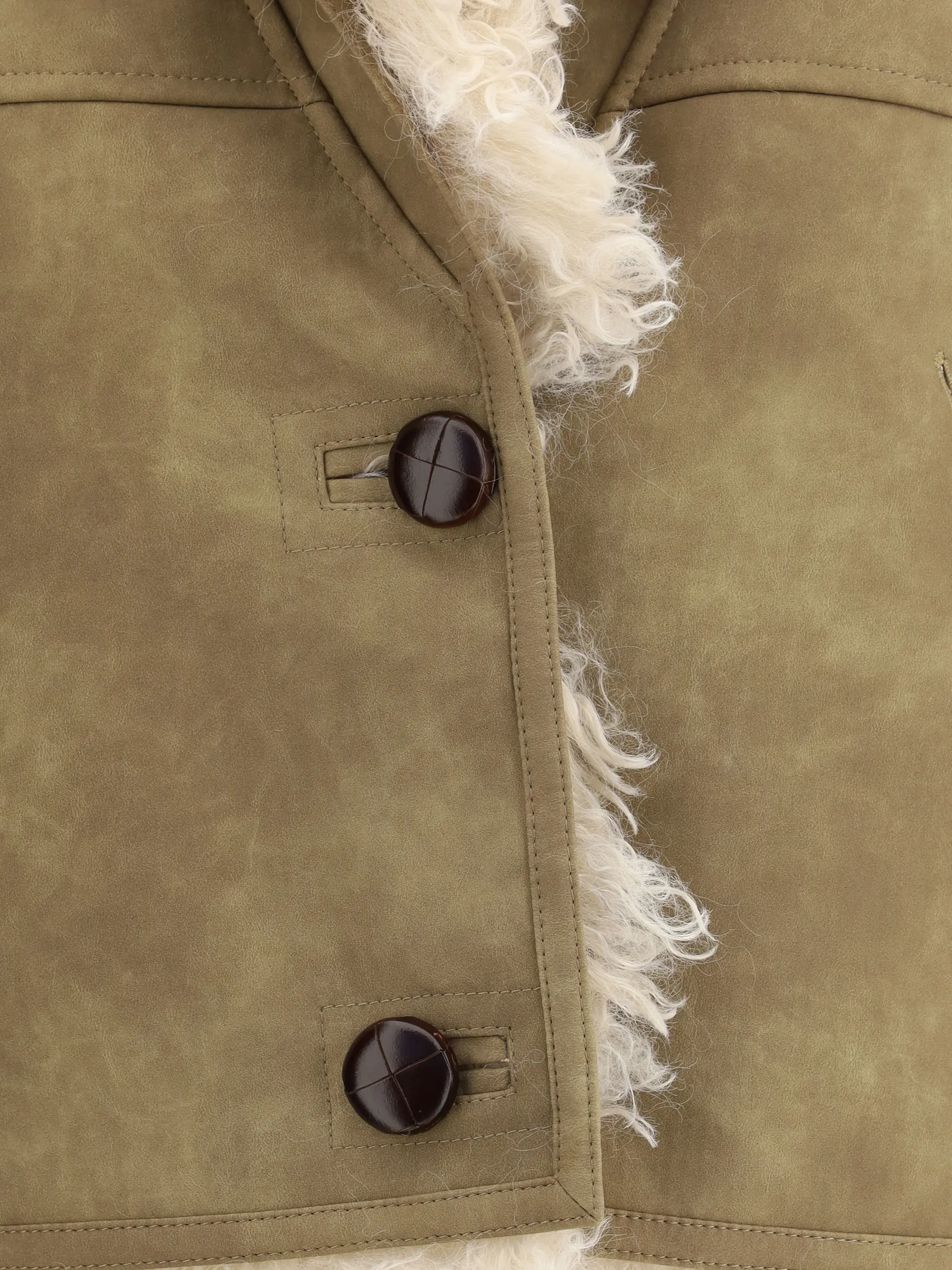 Marant Etoile's Clara Gilet, made of shearling faux leather, is a refined and contemporary design. It features a shawl collar, front button closure, side welt pockets and a short cut that enhances the silhouette, perfect for adding a touch of style to seasonal looks.