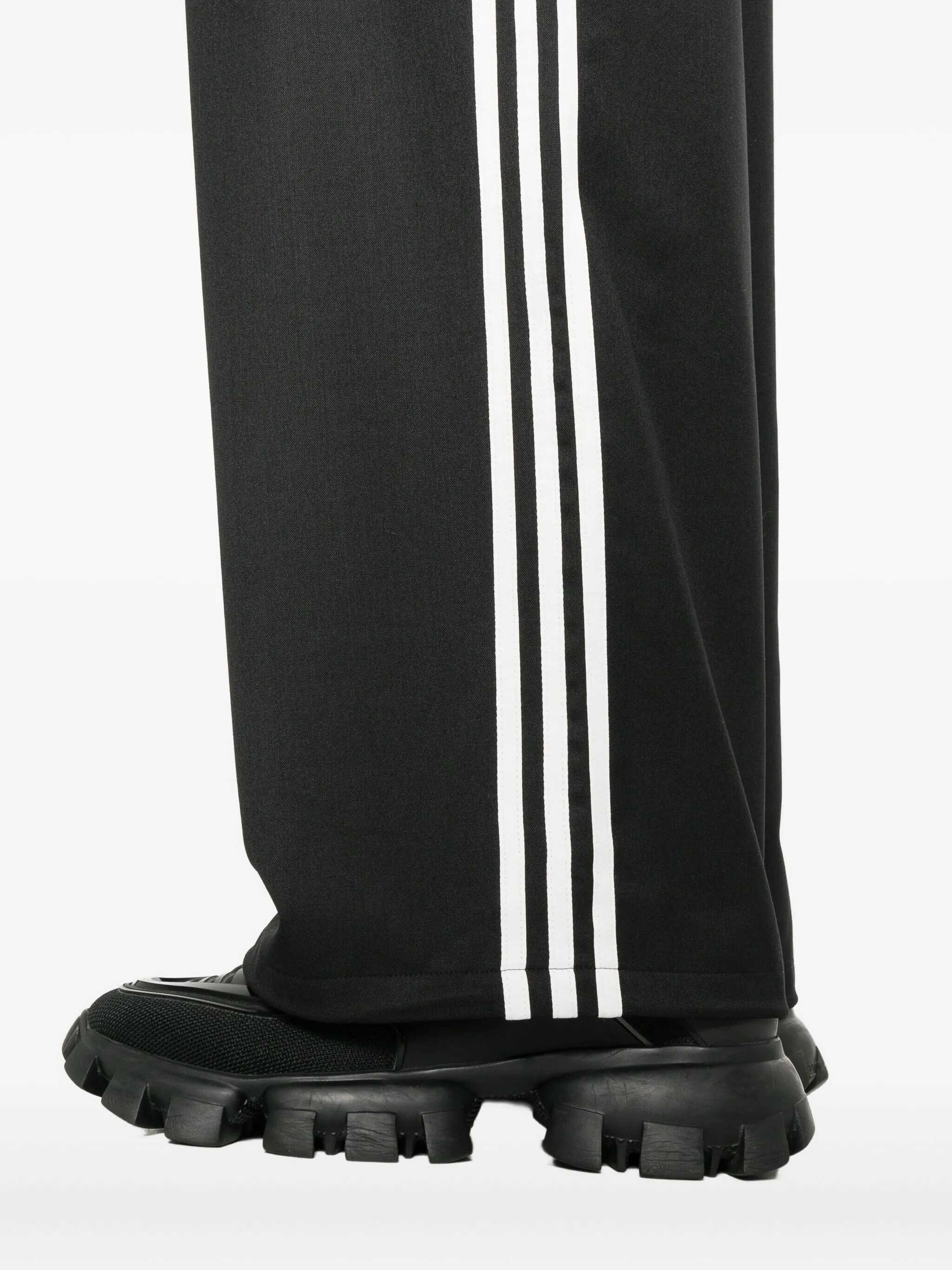 Wool-blend fabric pants with contrasting details, straight leg, zip and front button closure, adjustable drawstring elastic at the waist, pockets, drawstring at the bottom of the leg