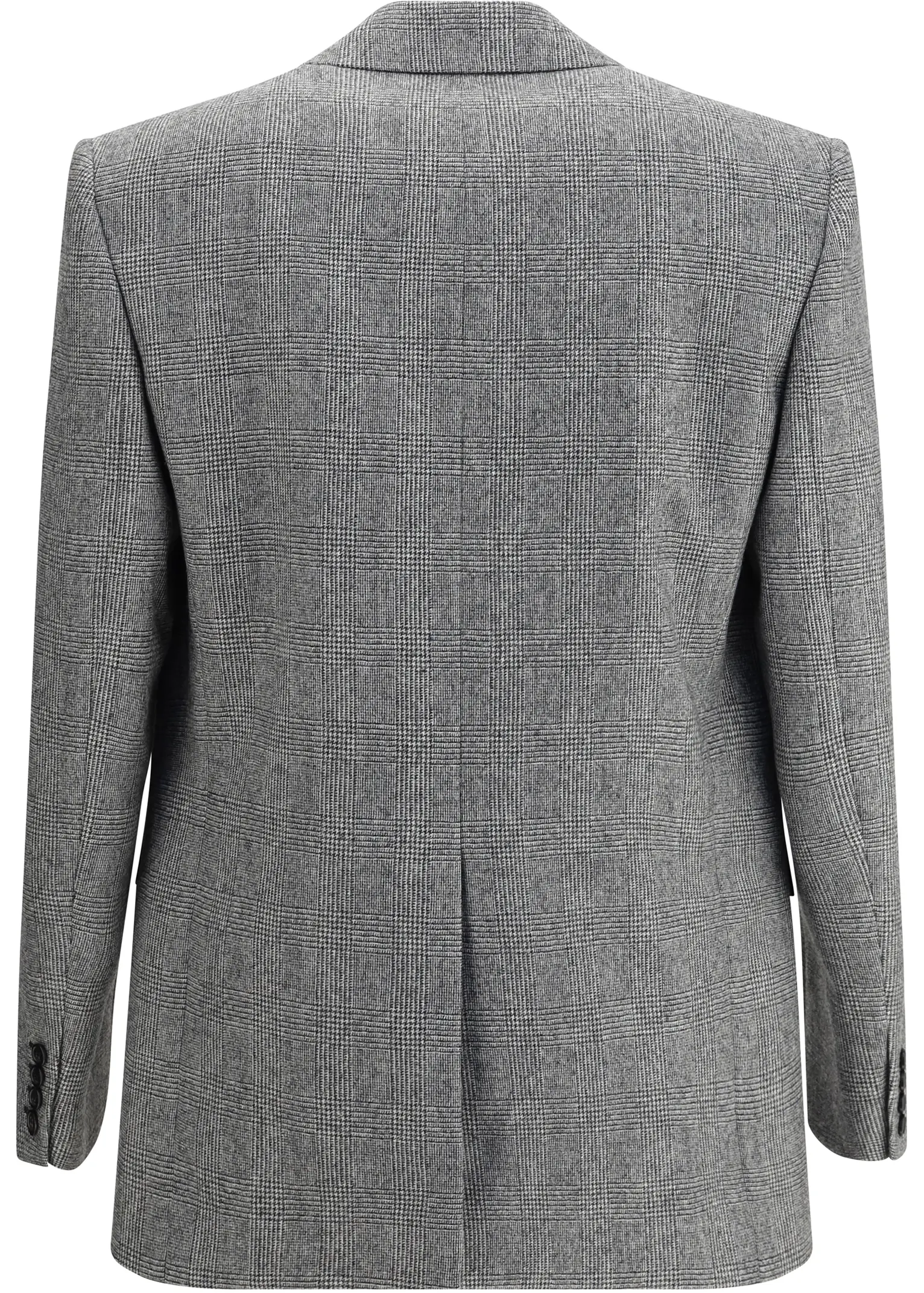 Saint Laurent's Prince de Galles wool flannel Blazer is a sophisticated piece with a tailored cut. Made with silk lining, it features a single-breasted, one-button silhouette with two welt flap pockets, a breast pocket and two profiled inside pockets. Four-button cuffs, padded shoulders and a back slit complete the design with a structured and timeless elegance.