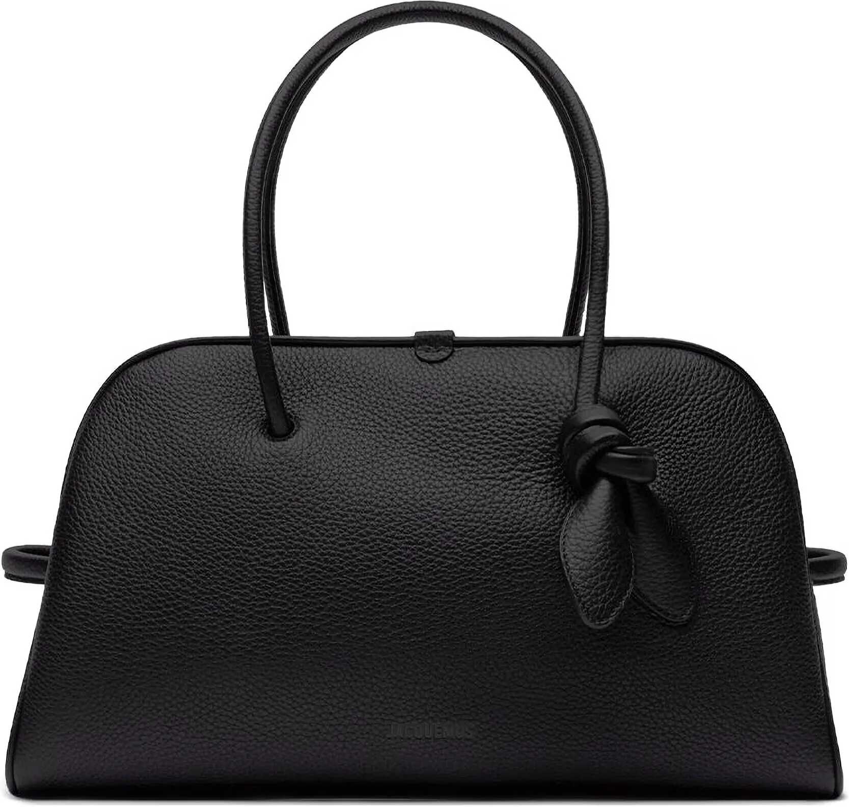 The Le Grand Tourisme Travel Bag by Jacquemus reinterprets the classic bowling bag in a modern and sophisticated key. Made of grained leather, it features a structured and functional design with a two-way zipper closure, interior zipper pocket and a large patch pocket on the front. The bow detail, the Maison's poetic signature, adds a distinctive and feminine touch. Perfect for weekend getaways or as an elegant carry-on.
